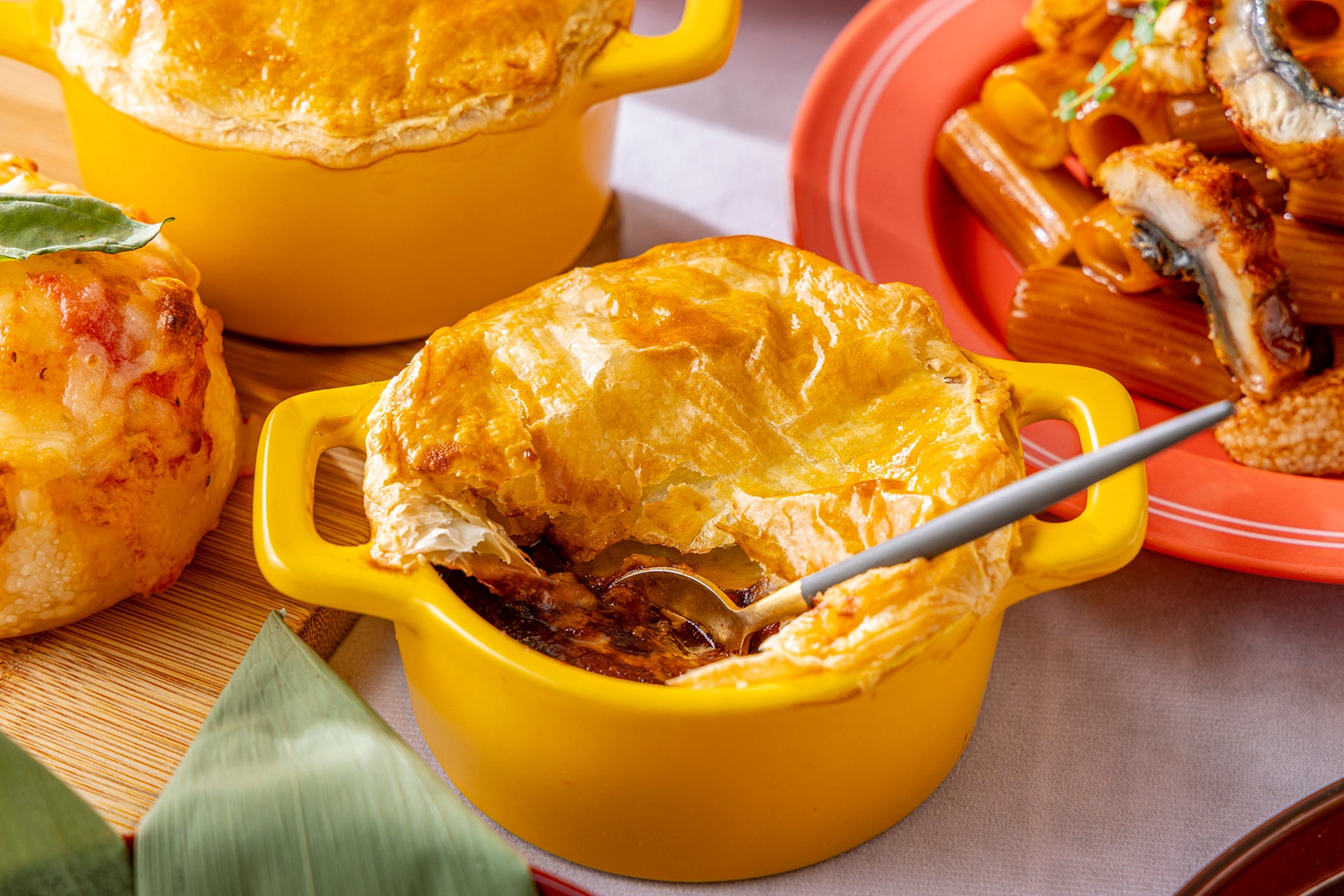 ディナータイムには「牛肉の煮込み パイ包み焼き」が登場。じっくりと煮込んだ牛肉の豊かな旨味を、香ばしいパイ生地で包みました。