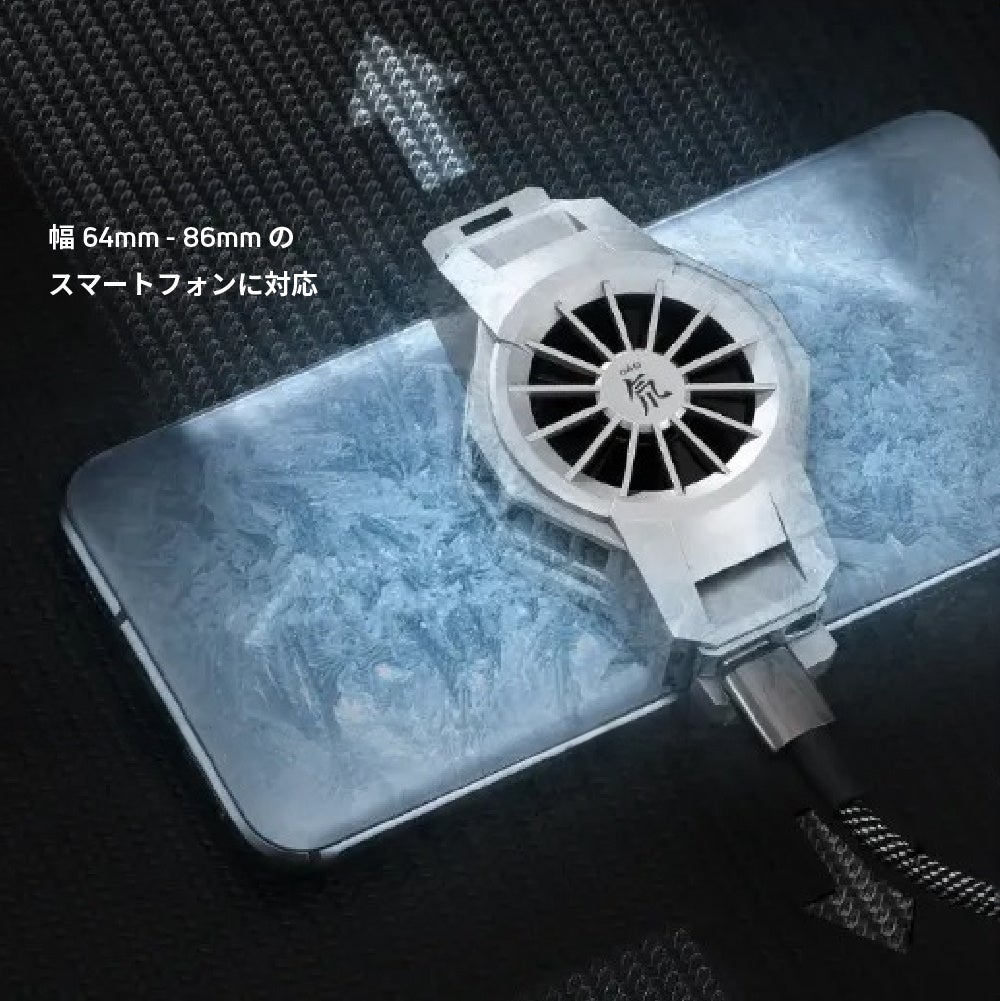 ⚫︎スマートフォン専用クーリング冷却ファン、64〜86mm幅のスマホ機種に合わせて設置が可能