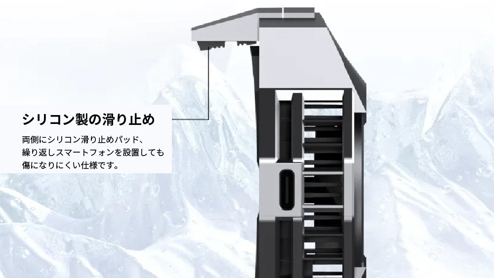 設置部分にはシリコンパーツを採用し、スマートフォンに配慮した設計です。