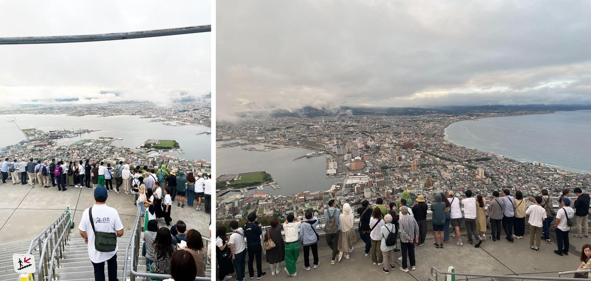 参加者は、函館を代表する観光地「函館山山頂」へ。上から街と海を一望することで豊かな海が育んだ函館に思いをはせました。一般社団法人Blue Commons Japanの國分晋吾さんは「函館はイカが多く獲れており、イカの街と呼ばれてきた。今は、これまで獲れなかったブリなどの魚も漁獲されるようになった。そうした海の変化がこの街の課題になっている。そういったことも景色から考えてもらえれば嬉しい」と話しました。