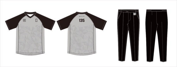オリジナルデザインのシャツフロントとバックには、B.LEAGUE発足当初から掲げている”3つの使命”からインスピレーションを受けた“トライアングル”の柄を採用しています。美しい立ち姿を目指し、サイドは切り替え、無地にすることでスタイルアップするデザインです。グレーが印象的なウェアですが、誠実さと公平さ、冷静さを表現するブラックをシャツの袖と、パンツに使用することで、汗をかいても目立ちにくく、ストレッチを効かせて動きやすくしました。