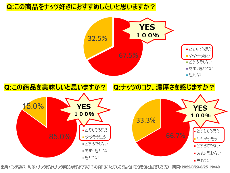 ナッツ好きに試食調査を実施したところ「おすすめ度」「おいしさ」「ナッツ感」すべてで高評価!