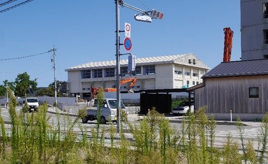 河井小学校の体育館。隣にあった校舎は被災し、解体が進む