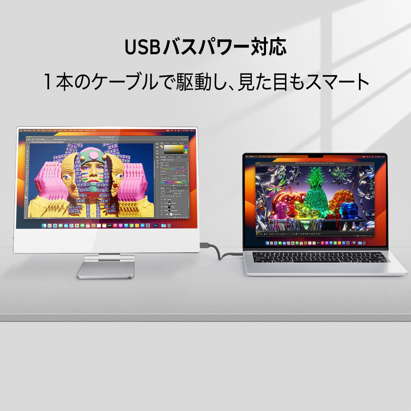 モニター用の電源アダプターは不要なため、持ち運びに便利で、デスク上をスッキリとできます。