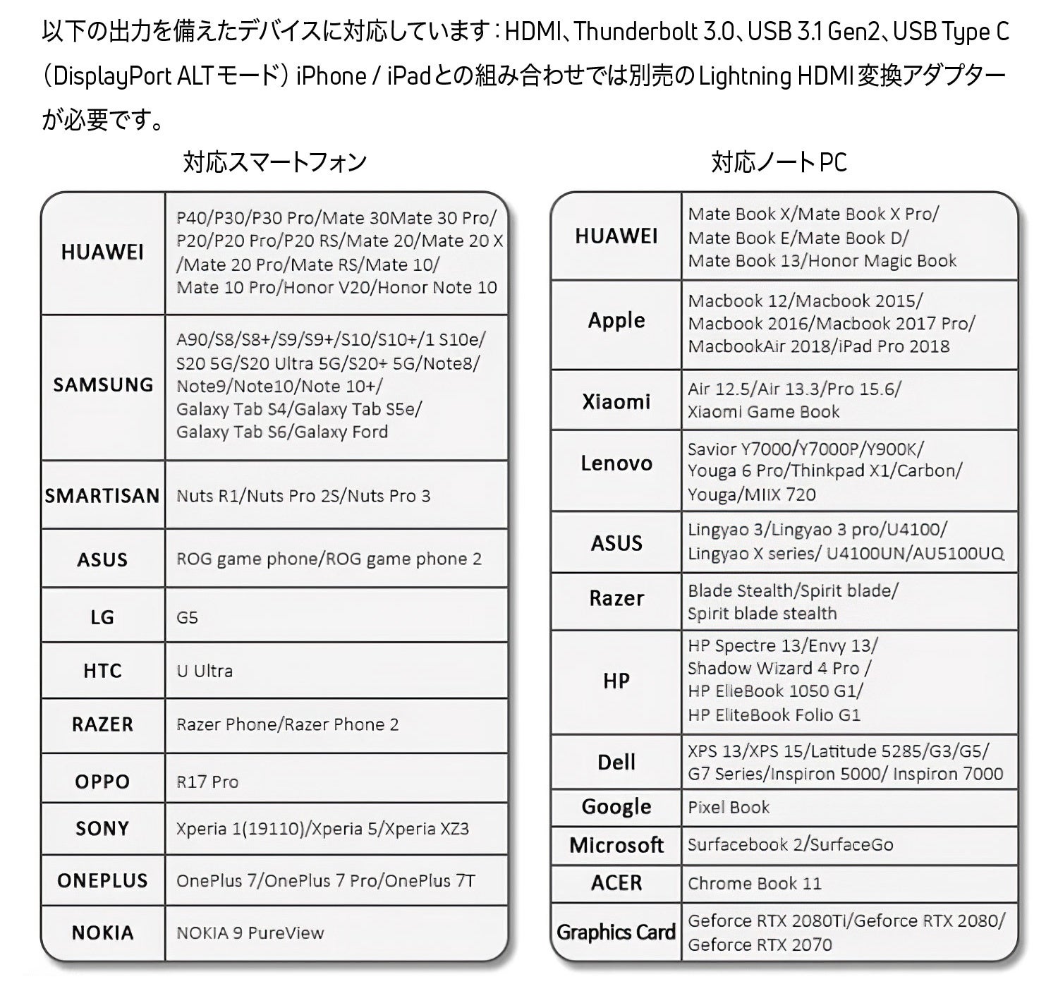 ※Type-Cポート経由でデバイスを接続する際、ラップトップ/携帯電話のType-Cがフル機能を備えているかどうかを確認してください。