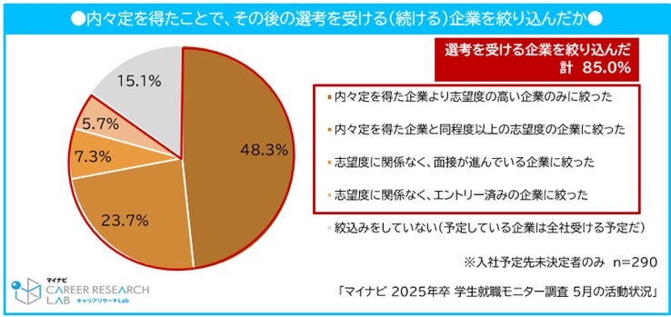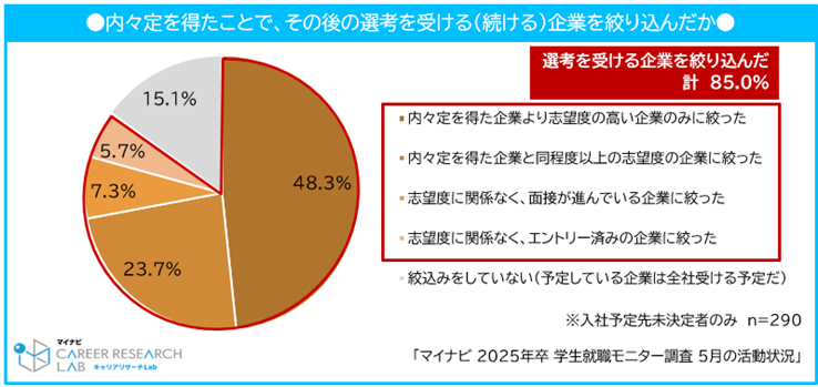 内々定を得たことで、その後の選考を受ける企業を絞り込んだ学生は85.0%【図4、5、6】