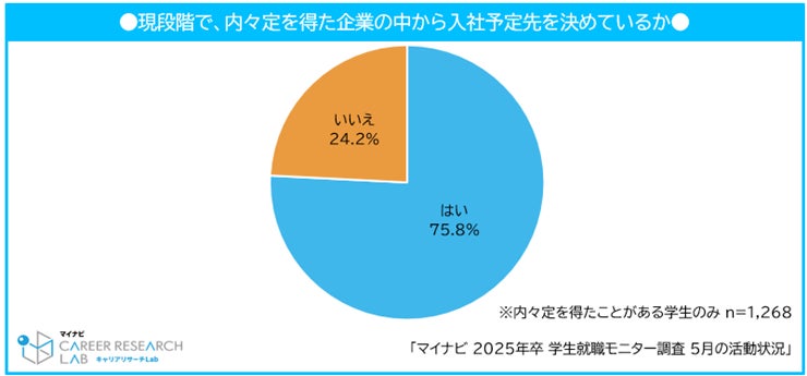 5月末時点で内々定を取得した学生のうち、75.8%は入社先を決定。