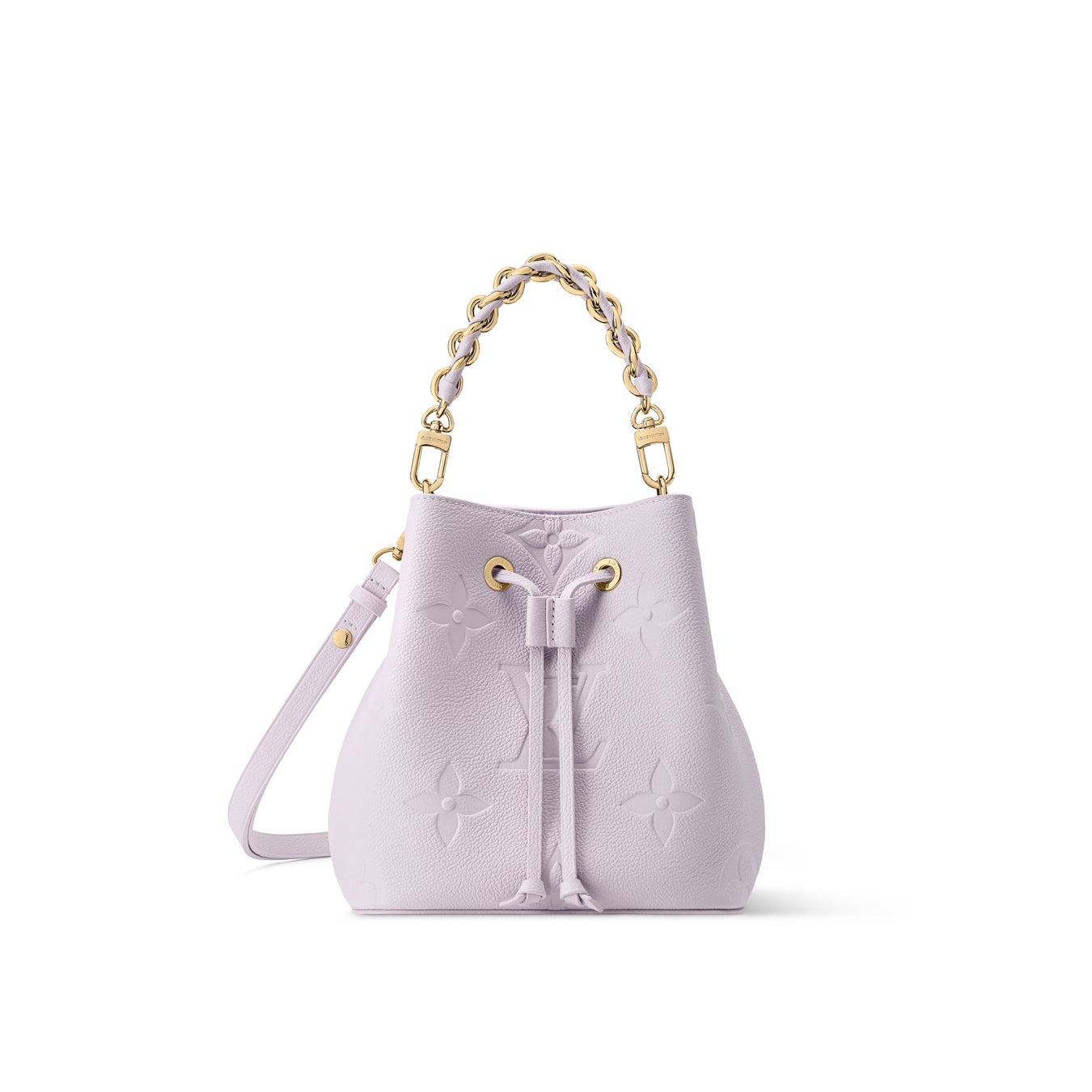 「ドリーム」コレクションに登場した、今シーズンならではの美しくフレッシュな雰囲気を漂わせるシックな「ネオノエ BB」。夢のようなパステルカラーで彩られ、ゴールドカラーの編み上げチェーンとのエレガントなコンビネーションを生み出しました。さまざまな持ち方を楽しめる収納性抜群のアイテムには内ポケット付き。