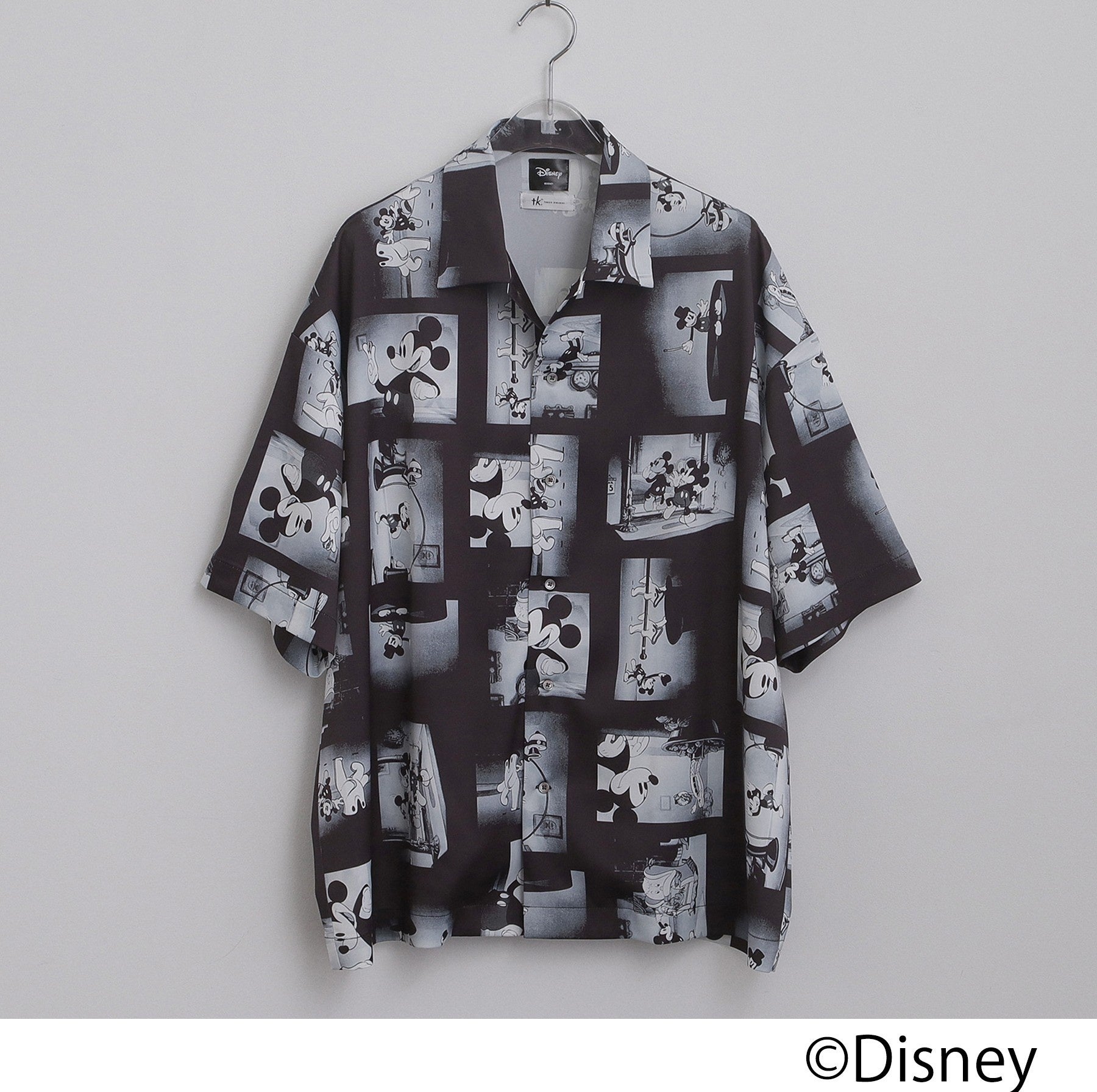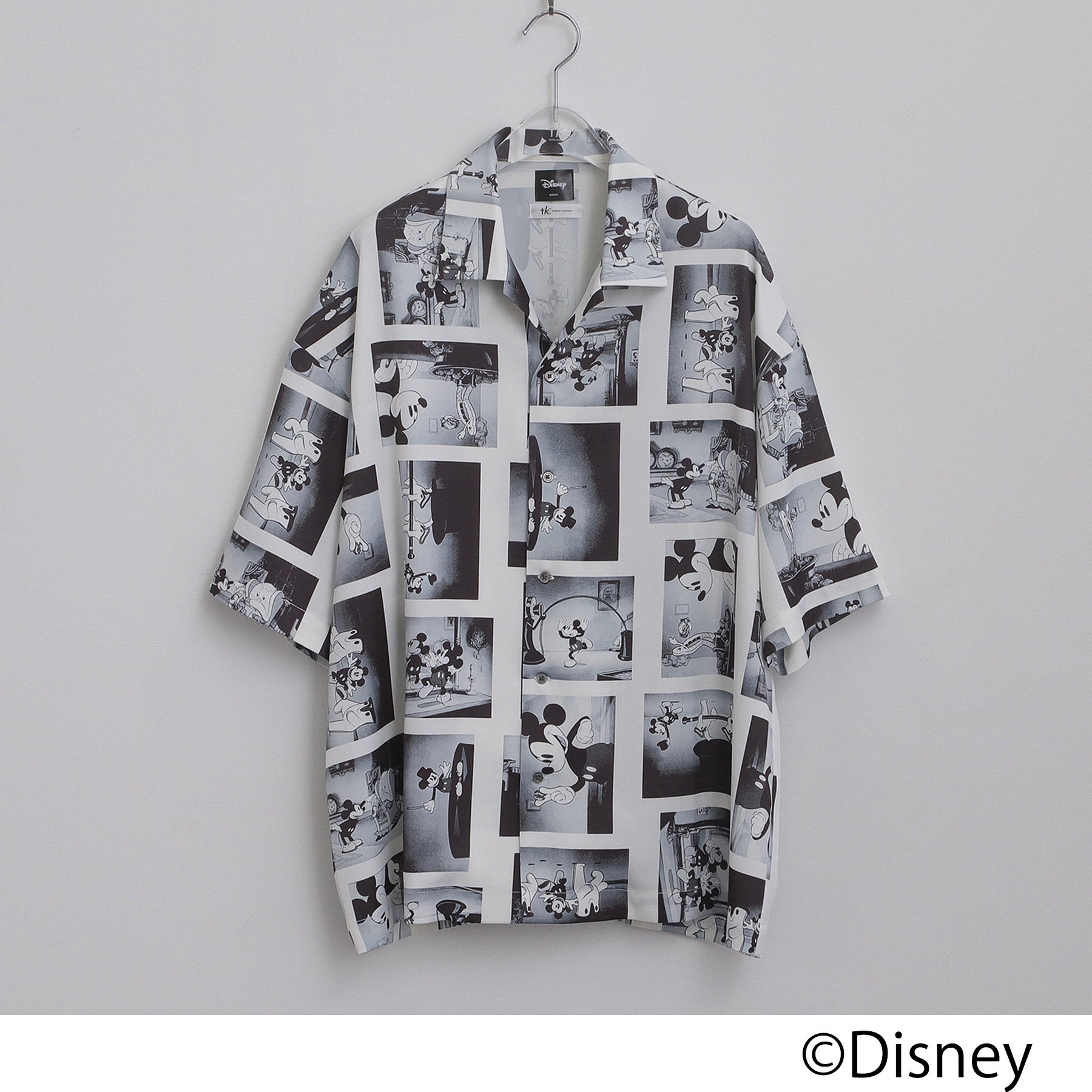 今回のコレクションは、クラシカルなモノトーンの世界観をベースに、刺繍やフロッキープリントでキャラクターを表現したTシャツや、作品のワンシーンをフィルムのようにコラージュした総柄シャツなど、tk.TAKEO KIKUCHらしい遊び心溢れるデザインに仕上げました。