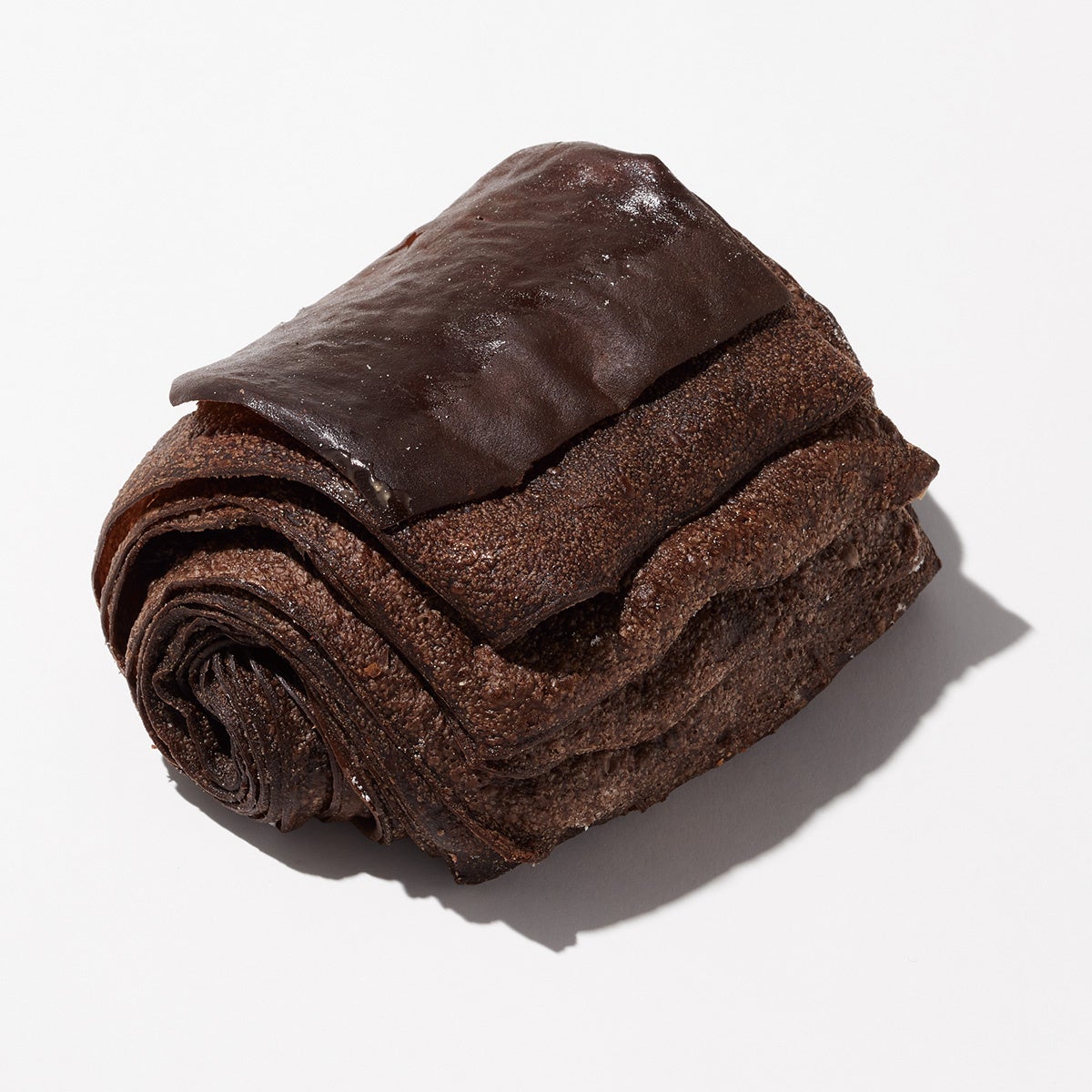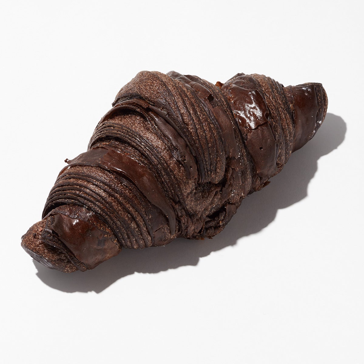 ココアを練りこんだクロワッサン生地にホワイトチョコをはさんで焼き上げました。