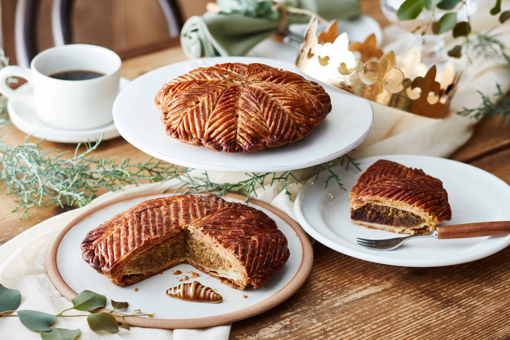 毎年ご好評のBOUL’ANGEのガレット・デ・ロワ。今年は定番の「プレーン」に加えて、「ピスタチオ」をご用意いたしました。どなたでもお試しいただきやすい直径約15cmという小ぶりのサイズ感と、お求めやすい価格にて今年もご提案します。オレンジリキュールとラム酒で香り豊かに仕上げたアーモンドクリームをバター香るリッチなパイ生 地でたっぷりと包んだ「プレーン」。そして、「ピスタチオ」は、香り豊かなパイ生地の中に、芳醇なピスタチオダマンドと甘酸っぱいラズベリージャムを丁寧に挟み込んだ特製アーモンドクリームを包み込み、風味とコクが織りなす贅沢なひとときを演出します。一口頬張るごとに、香ばしいパイ生地と華やかな香り、そしてクリーミーなアーモンドの深い味わいが口いっぱいに広がる逸品をぜひお楽しみください。