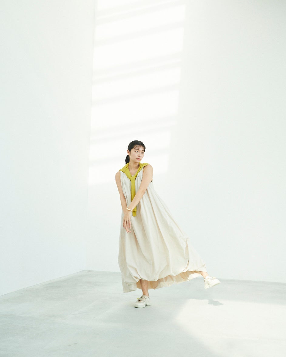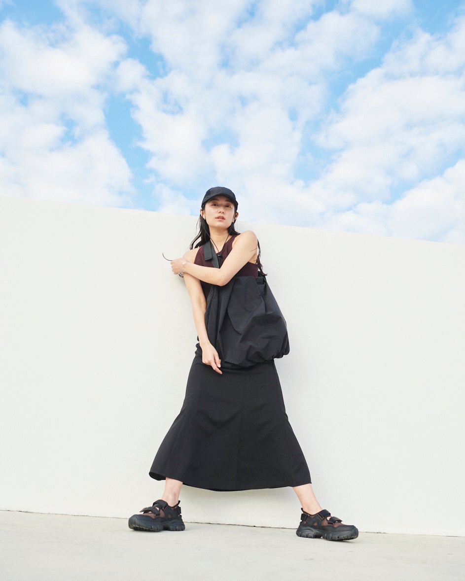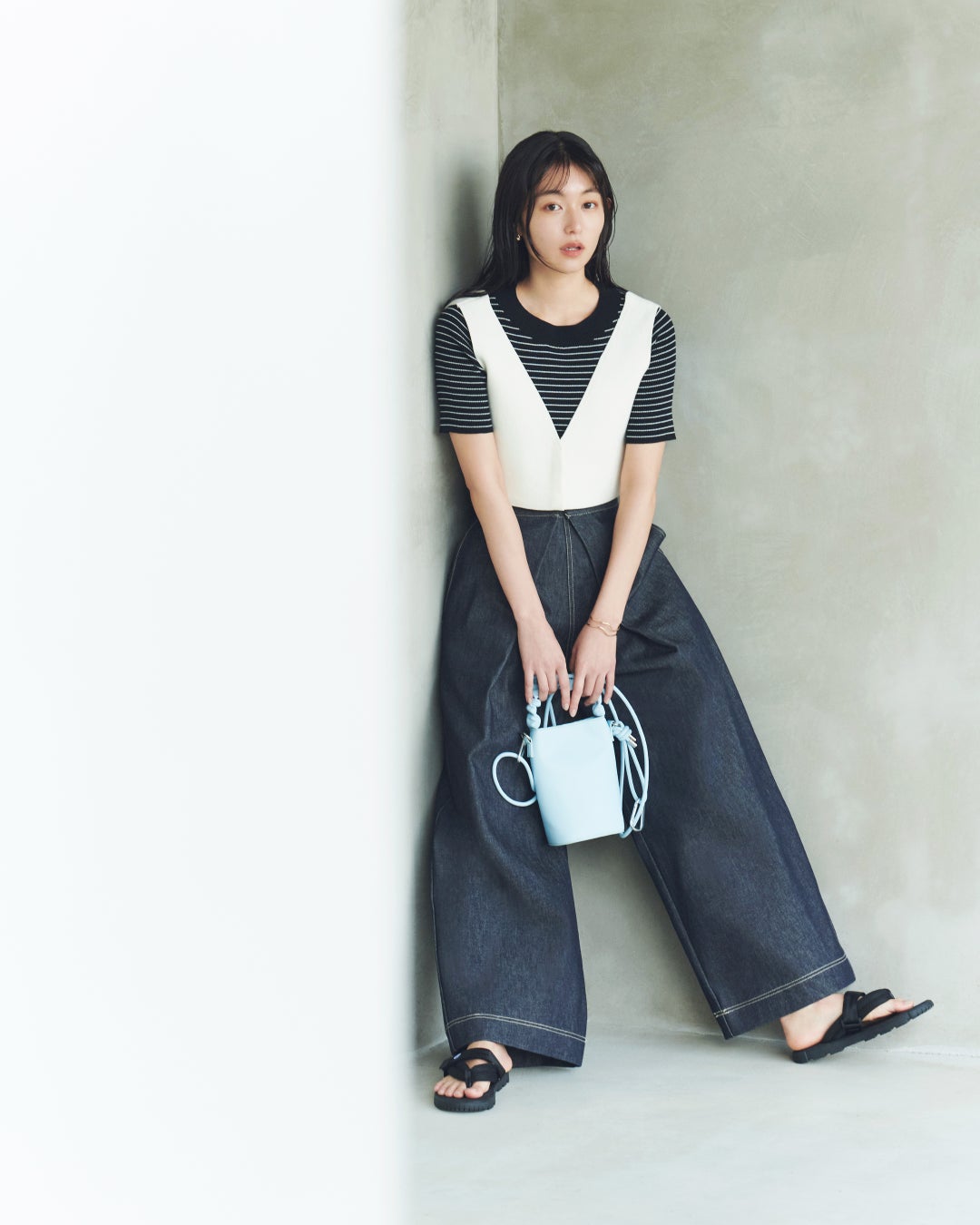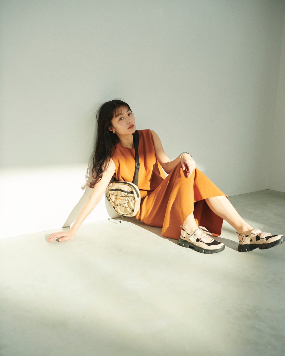 夏の装いにモードさをプラスする、アースカラーを主役にしたベージュ×ブラックに、
