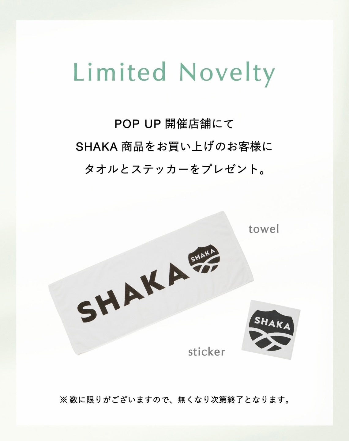 POP UP開催店舗にてSHAKA商品をお買い上げのお客様にタオルとステッカーをプレゼント。