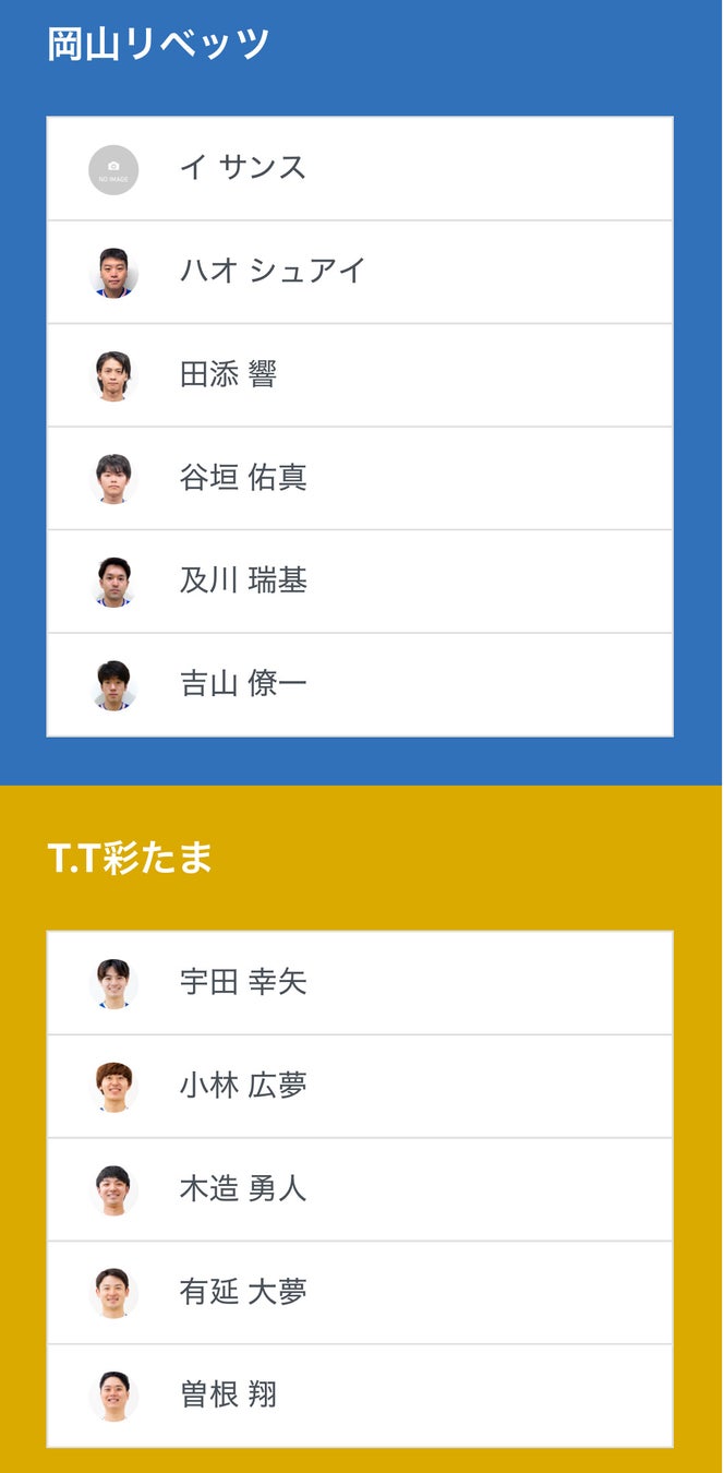 ノジマTリーグ 2024-2025シーズン 公式戦 2月8日開催 岡山リベッツ vs T.T彩たま ベンチ入り選手発表