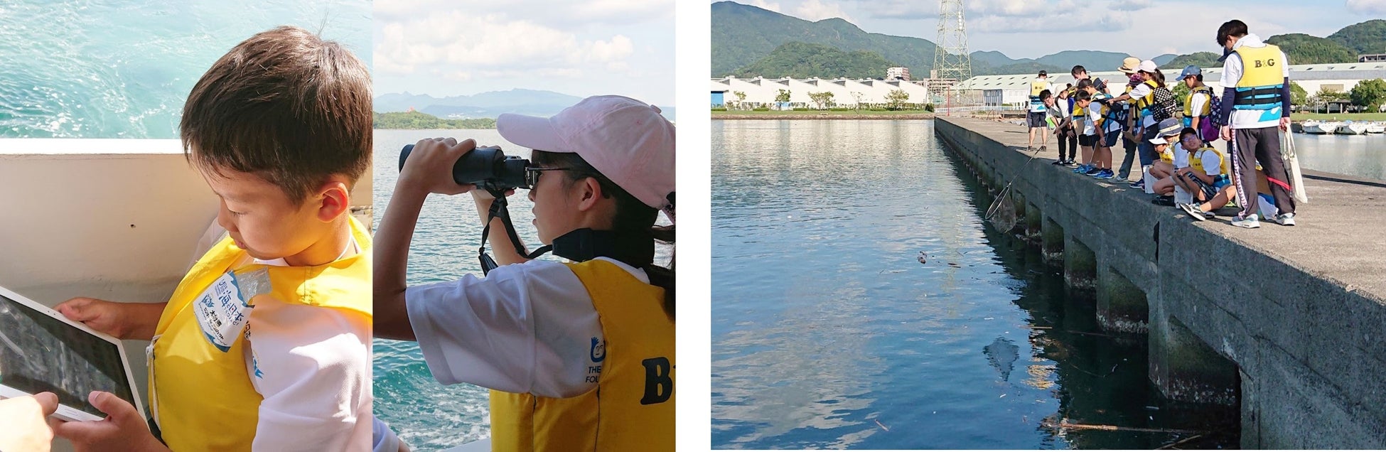 長崎大学大学院水産・環境科学総合研究科の協力のもと、大村湾全体を3つの測線に分けて漂流ごみを観測・分析する今回の「大村湾 海洋ごみ調査」。小中学生で構成される調査隊は、その調査船に同乗し3つの内、1つの測線の漂流ごみ目視観測調査を実際に体験します。