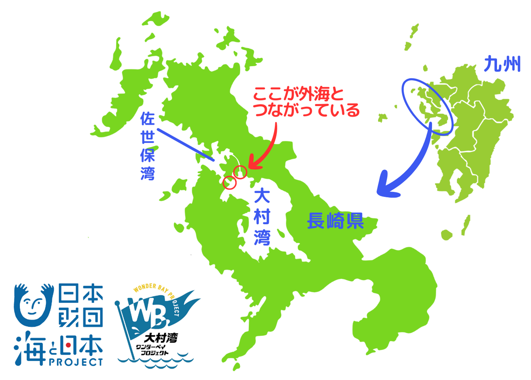 ①大村湾は、針尾瀬戸および早岐瀬戸のみで外海と通じている非常に閉鎖性が強い湾です。