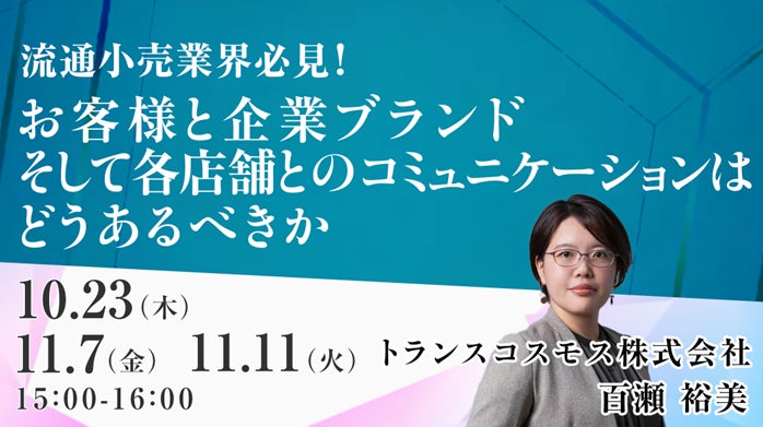 【トランスコスモスオンラインセミナー】流通小売業界必見!お客様と企業ブランド、そして各店舗とのコミュニケーションはどうあるべきかを10月23日(木)、11月7日(金)、11月11日(火)に開催