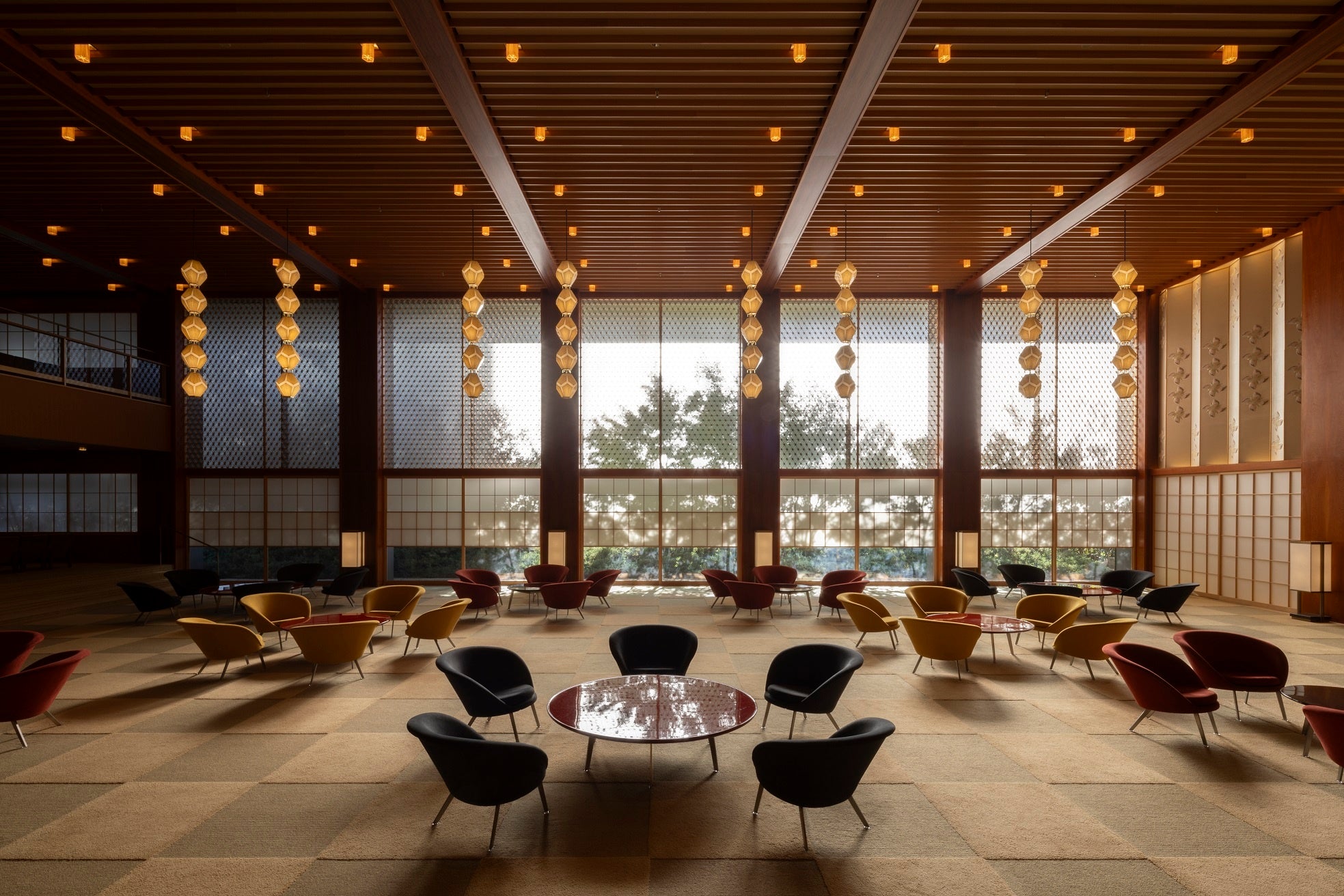 オークラ東京のロビーは独特の雰囲気を持ち、背筋が伸びるような感覚を覚える一方で、決して窮屈さを感じさせることなく、和の優しさが感じられる安らぎに満ちた素晴らしい空間です。日本ではスクラップ&ビルドが多い中、ランタンのLED化や家具のメンテナンス・継承、ロビーのメザニン(中二階)を自然な形で引き継ぐなど、かつての本館から伝統的な要素を受け継いだことは非常に意義深い選択だったといえるでしょう。最近、日本国内では京都や東京を中心にデザイン性を重視したホテルが増加していますが、オークラ東京こそがその先駆者であると感じます。
