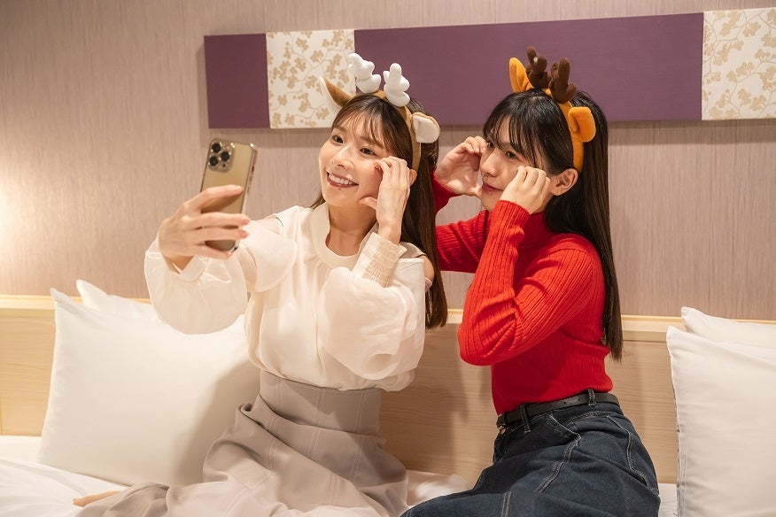 客室内にはサンタ帽や韓国風のクリスマスカチューシャをご用意。