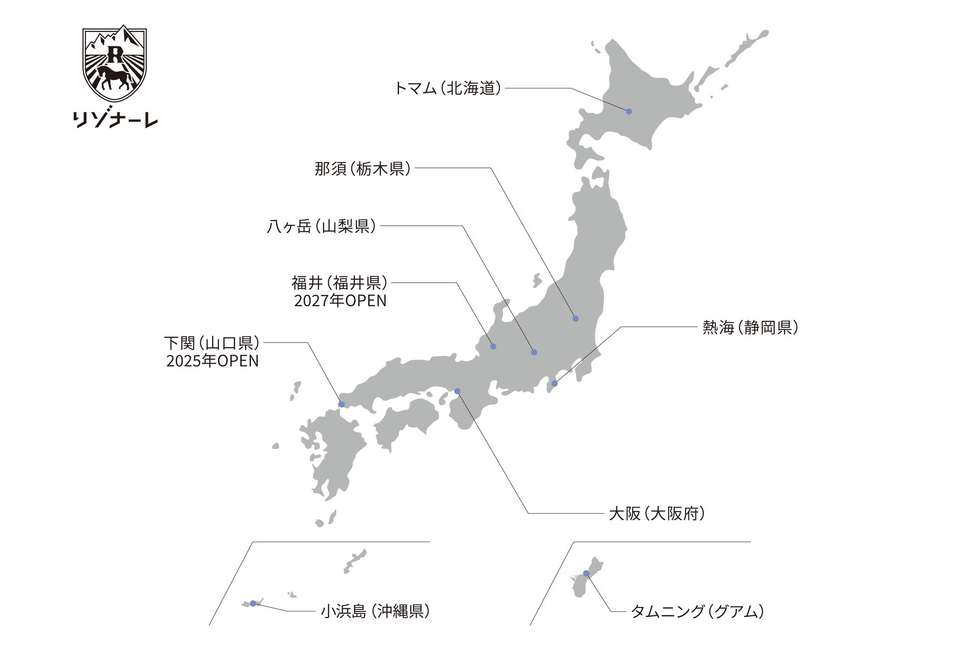 コンセプトは、夢中になって楽しみ尽くす「PLAY HARD」。土地の特性を活かした空間デザインや多彩なアクティビティ、地域・季節ならではの体験を通して、訪れる方々に想像を超える滞在と心に残る旅を提供します。現在は、2025年12月開業の「リゾナーレ下関」を含め、国内外で8施設を展開中。さらに2027年には、「リゾナーレ福井」の開業を予定しています。