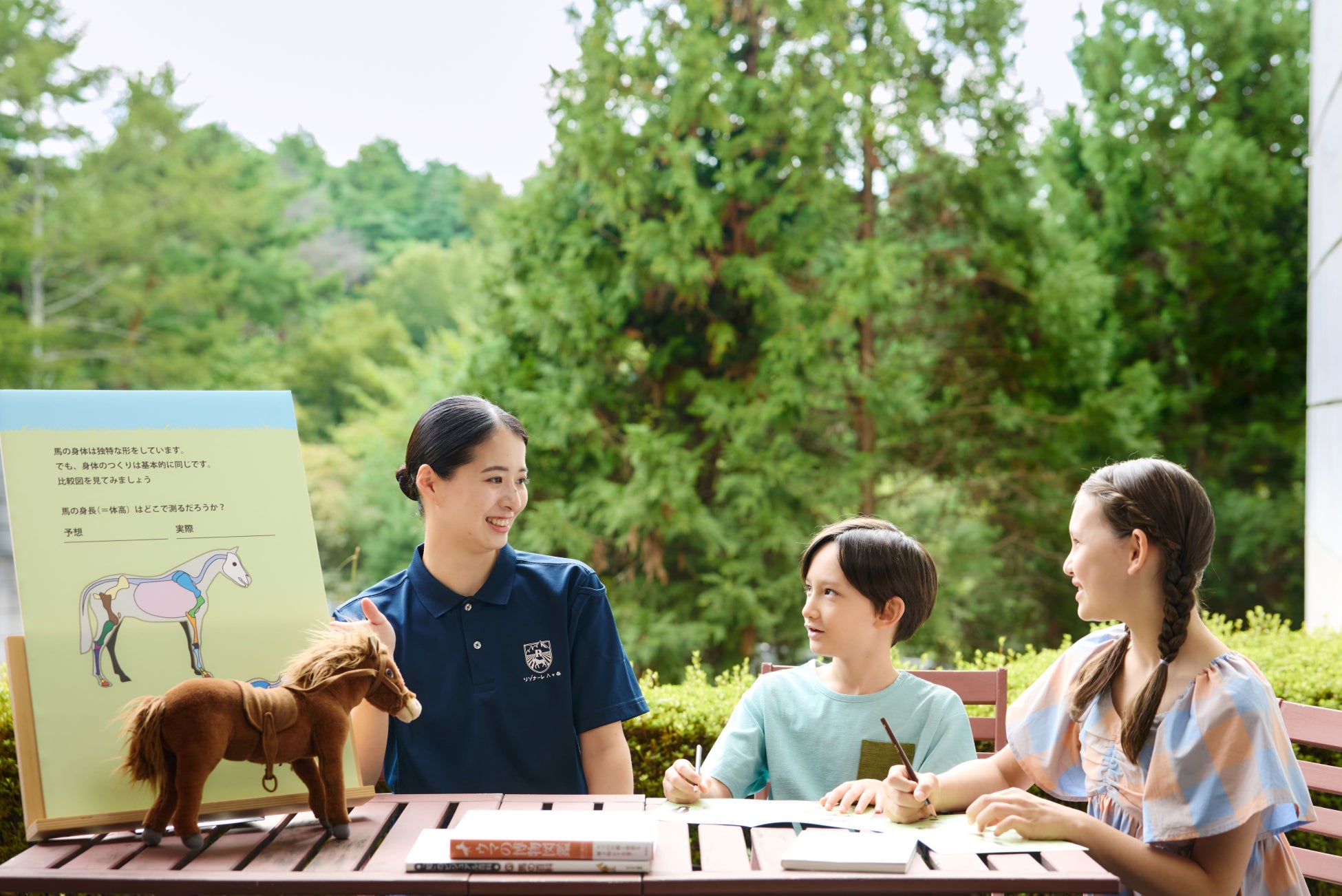 八ヶ岳エリアは、多くの乗馬クラブが集まる「馬のまち」として知られています。その環境を活かした「馬の学校」は、馬の特性や道具の知識を予習してから実際のふれあいに進む、学びを深めるプログラムです。馬場では、学んだ知識を活かして餌やりやブラッシングを行い、最後は乗馬にも挑戦。事前学習があるからこそ、馬とのふれあいが単なる体験で終わらず、命への理解や思いやりの心を育む貴重な一歩となります。