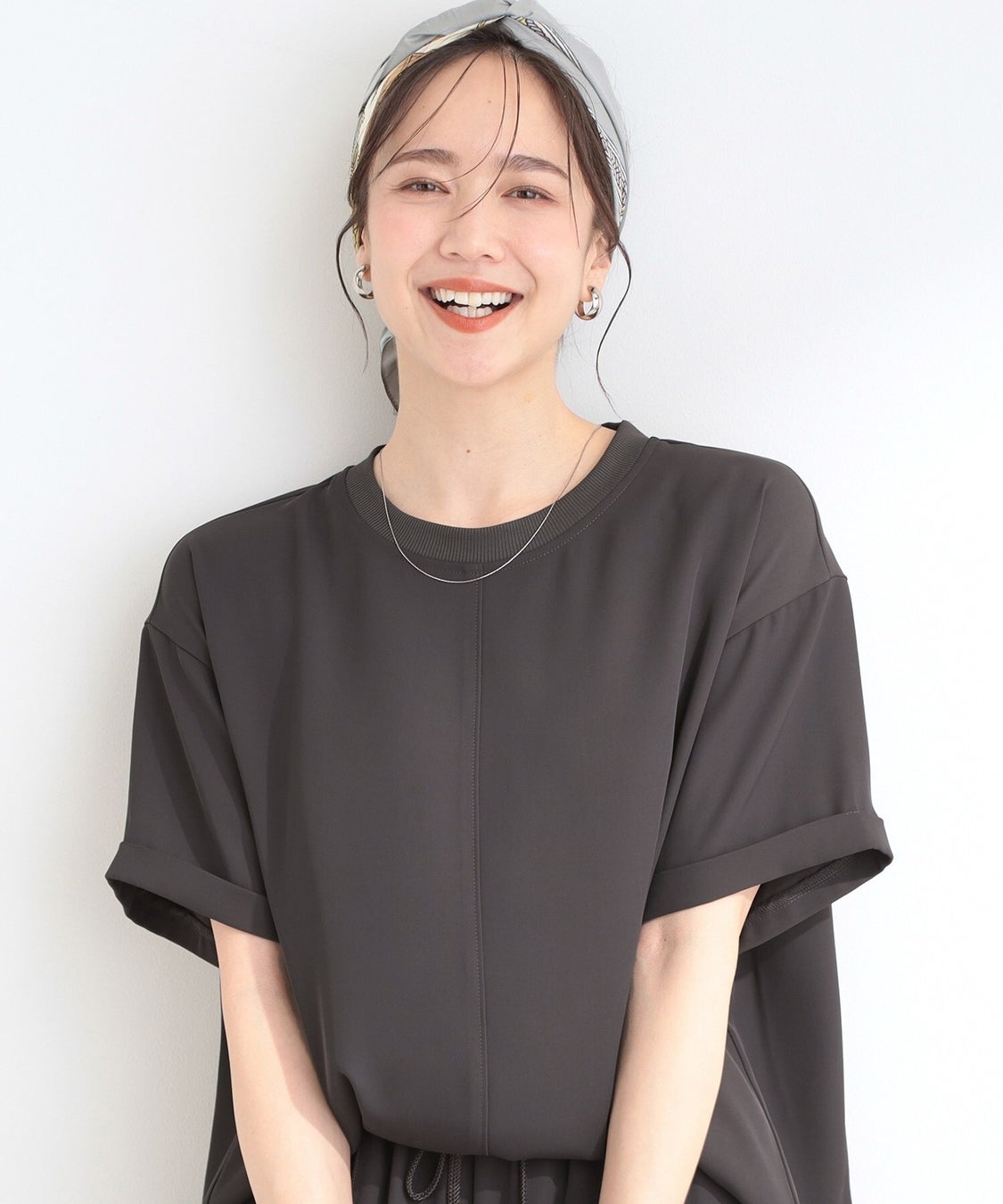 こなれた印象にしてくれる、袖口のロールアップデザイン。きれいめなテーパードパンツや、ワイドパンツ合わせでキレイ目な着こなしだけではなく、デニム合わせやボリュームスカート合わせでカジュアルコーデにもオススメです。