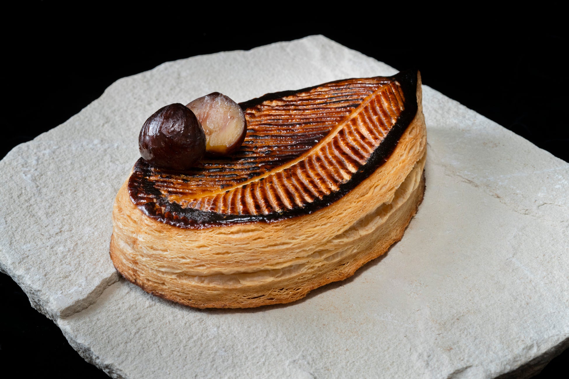 当ホテルが贈る「ショソン・オ・マロン」は、フランスの焼き菓子「ショソン・オ・ポム」に着想を得た贅沢な一品です。三日月型に包み込んだサクサクのパイ生地の中には、和栗100%のフィリングをたっぷり詰め込みました。フランスと日本の食文化の融合を追求するイスラムシェフがこだわり抜いた和栗は、滋味深く、上品で穏やかな甘みが特徴です。待ちわびたホリデーシーズン、大切な方との温かなひとときにぴったりの、特別な味わいをご堪能ください。