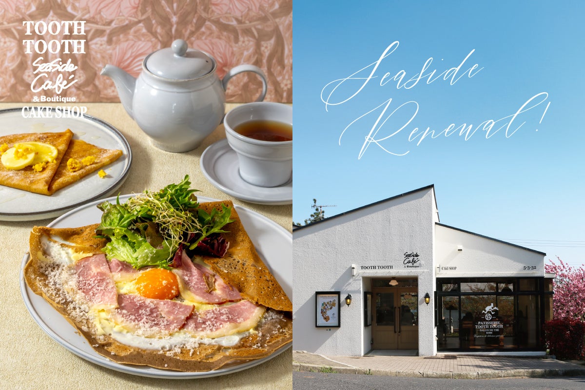 四季折々の景色を眺めながらランチやカフェをお楽しみいただける「PATISSERIE TOOTH TOOTH シーサイドカフェ」では、より一層様々なシーンでご利用いただけるようにお食事とデザートのメニューを一新いたします。2025年3月26日(水)より。