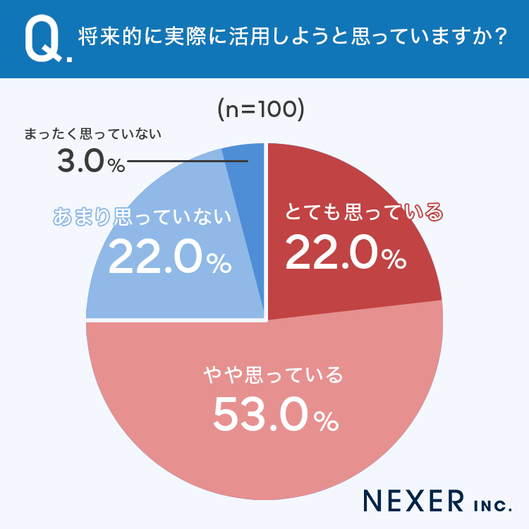 続いて、将来的に実際に活用しようと思っているかを聞いてみました。
