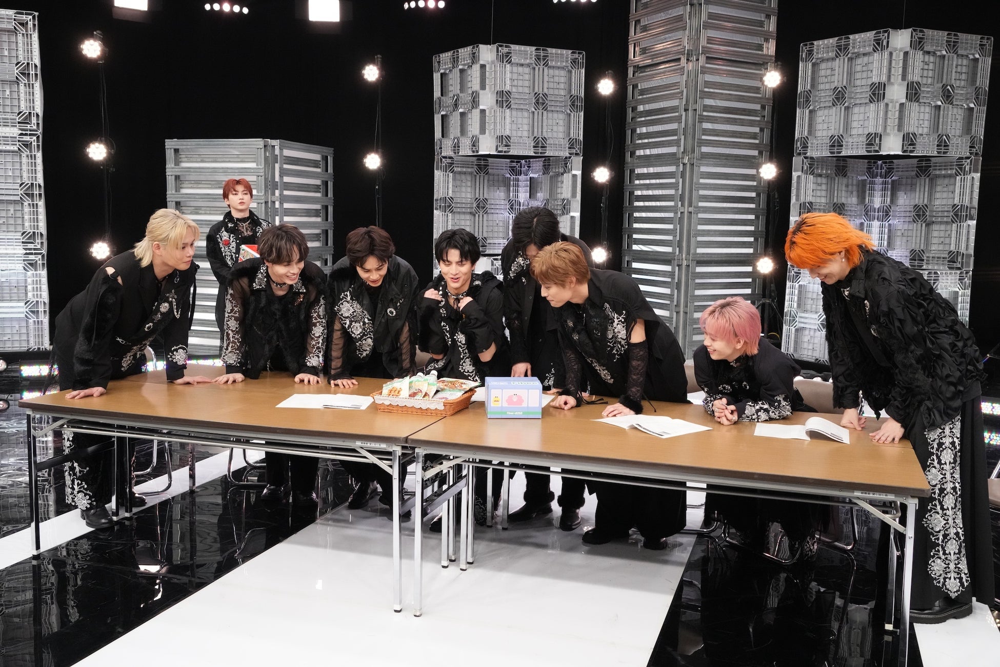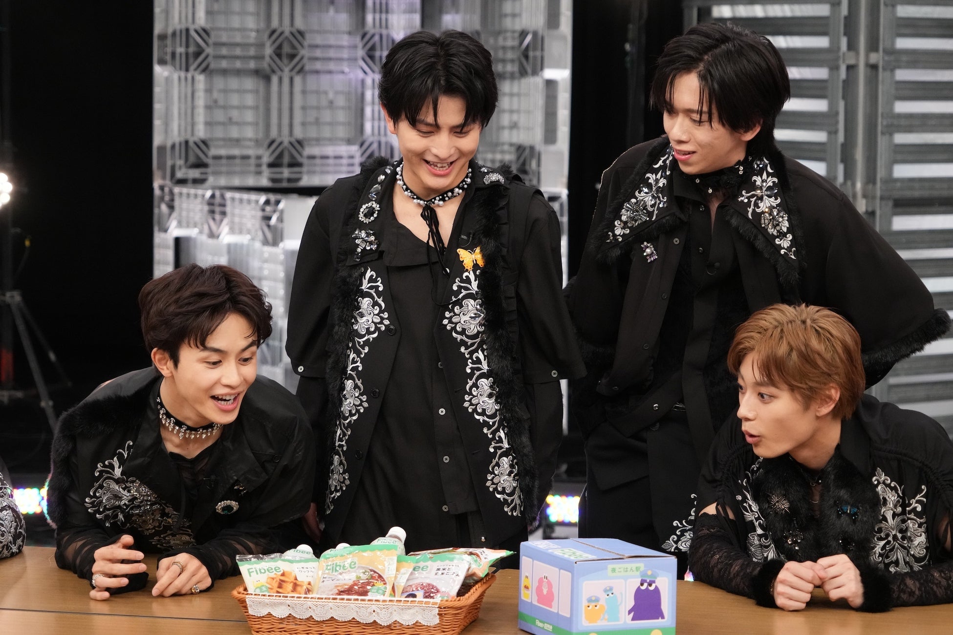 今回のCMで紹介するのは、発酵性食物繊維に着目したブランド「Fibee(ファイビー)」と“腸”特急のコラボで発売される「Fibee乗りつぎBOX 夜ごはん駅行き」。電車デザインのBOXに入ったバリエーション豊かな夜ごはんのセットが番組恒例の歌収録を行っているスタジオにやってきて、メンバー9人が大盛り上がり!