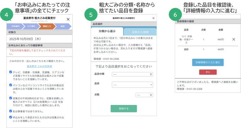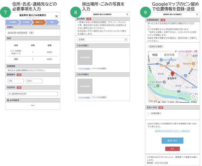 ■富良野市LINE公式アカウントから粗大ごみ収集を申し込む流れ