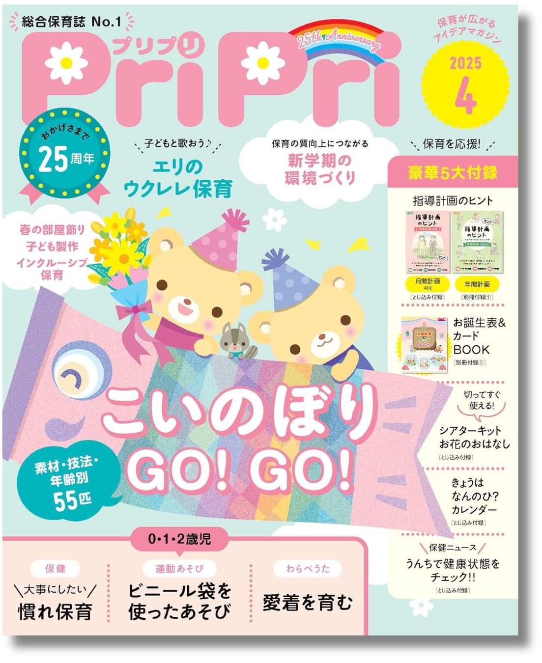 保育総合誌No.1の『PriPri』は、保育が広がるアイデアマガジンです。子どもの年齢に合ったかわいい製作ネタが充実。具体的なプランや保育ノウハウがいっぱい。すぐに使えるべんりな付録もついてきます。2025年度は特別号を含めて7冊刊行。