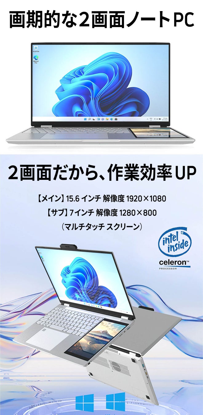 マルチタスクに最適!15.6インチと7インチの2画面を備えた画期的なノートPC RevoPad(Intelクアッドコア RGBバックライトキーボード)を「Gloture楽天ストア」で販売開始