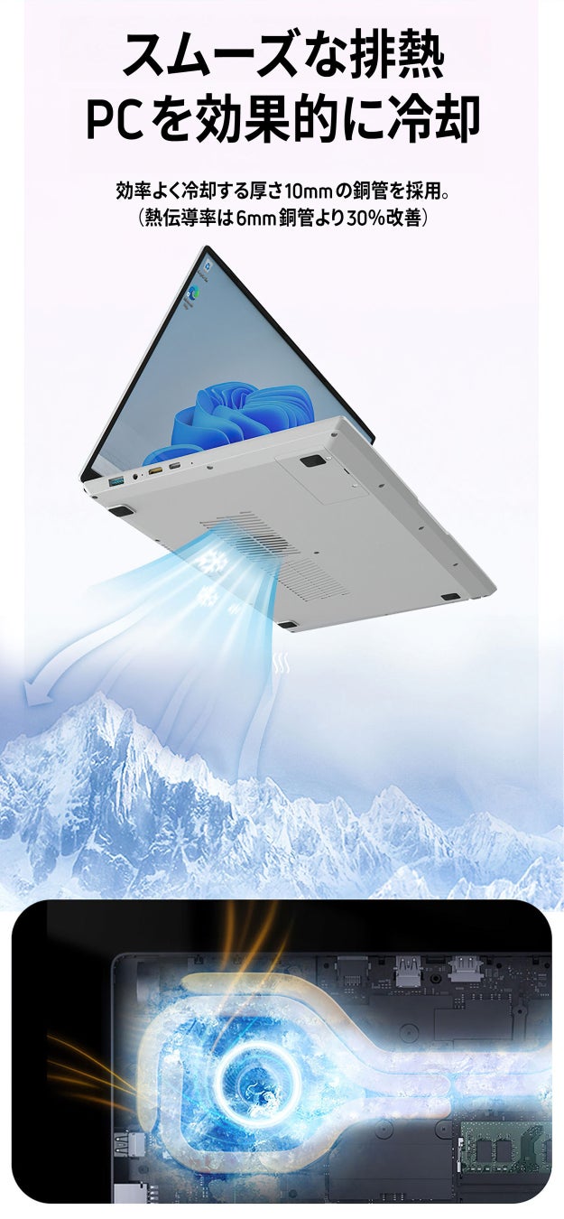 ヒートシンク、ヒートパイプ構造を最適化したことにより、PCの冷却効率が向上しました。