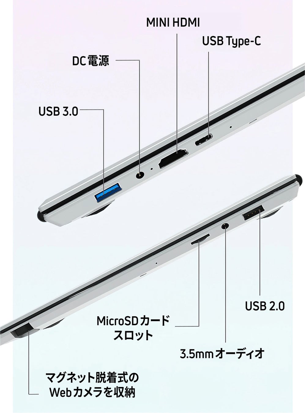 ポート | 1*USB 3.0、1*USB2.0、1*HDMI、1*Type C、1*ヘッドフォンソケット、1*TFカードリーダー、1*DC電源ソケット |