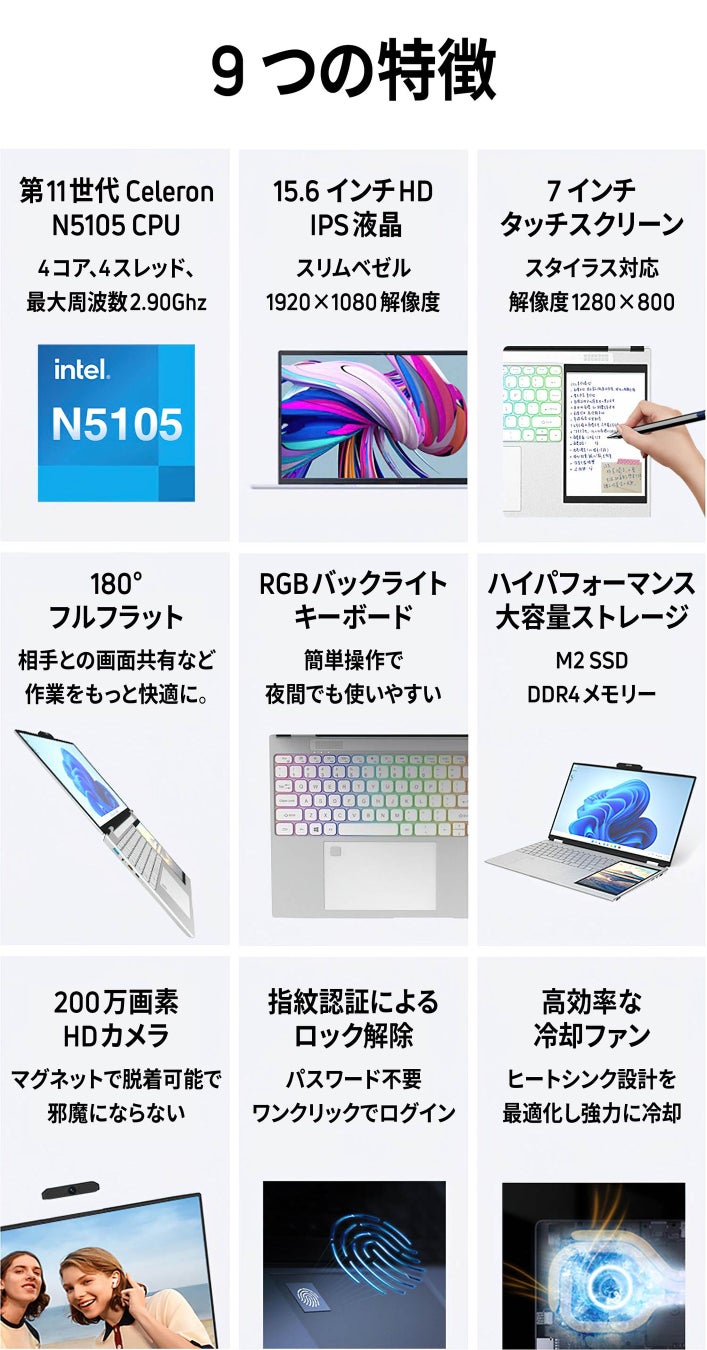 Windows 11 Pro搭載、Intel 第11世代 Celeron N5105、512GB M.2 SSD、16GB DDR4メモリ