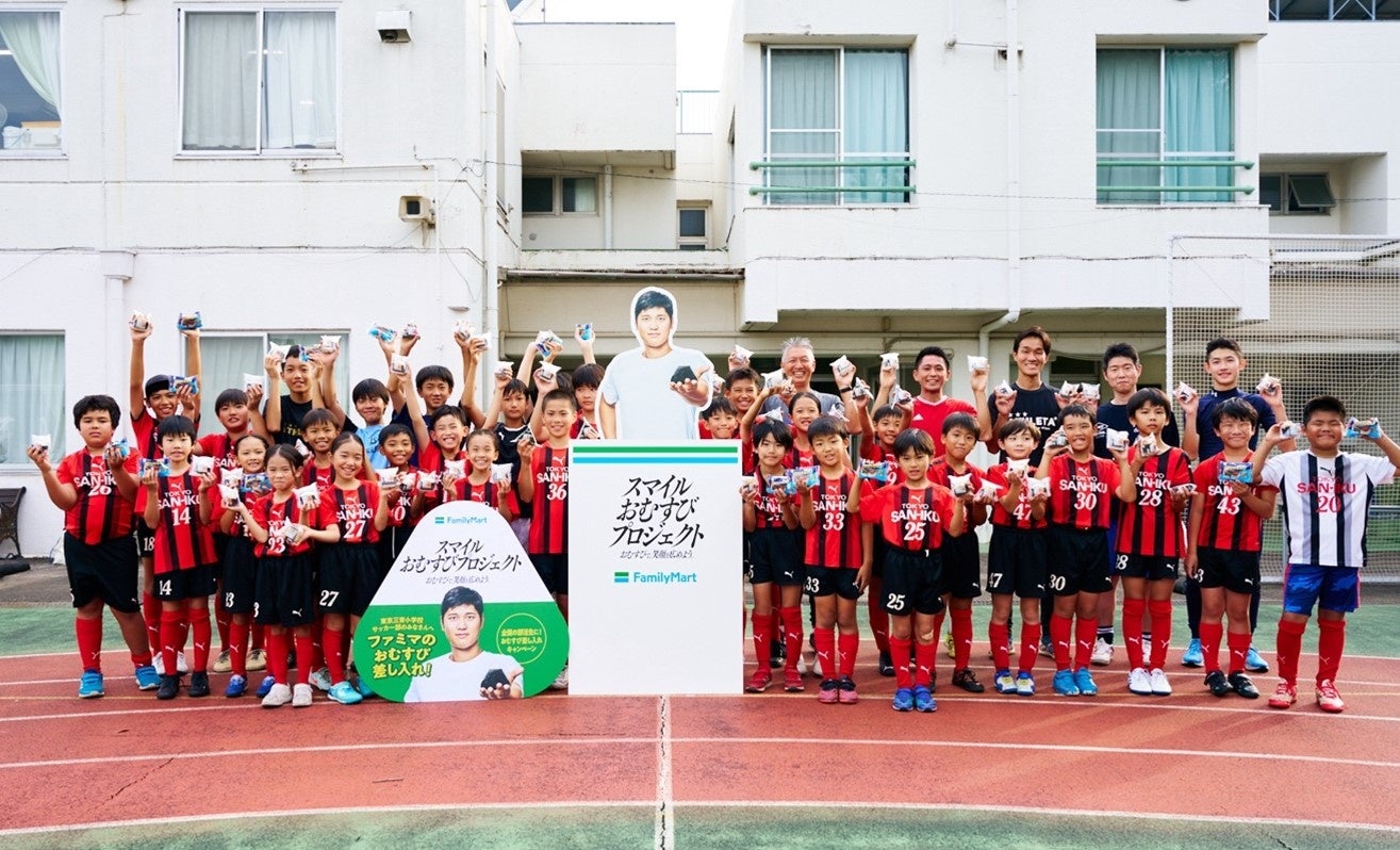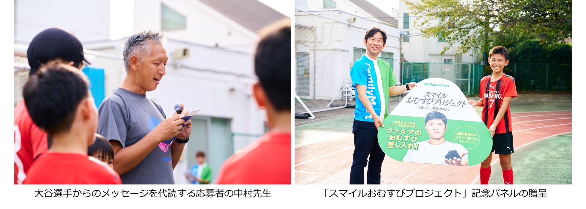 株式会社ファミリーマート(本社:東京都港区、代表取締役社長:細見研介、以下、当社)は、2025年10月12日(日)に、社会貢献プロジェクト「スマイルおむすびプロジェクト」の一環として開催した 「スマイルおむすびプロジェクト おむすび贈呈式」 にて、東京三育小学校(所在地:東京都練馬区関町南2-8-4)サッカー部のこどもたちに、当社のおむすびと、おむすびアンバサダーである大谷翔平選手からのお手紙をサプライズでお届けいたしました。
