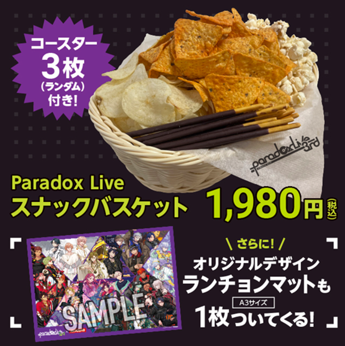 コラボフード「Paradox Liveスナックバスケット(オリジナルランチョンマット付)」【1,980円(税込)】もご用意!