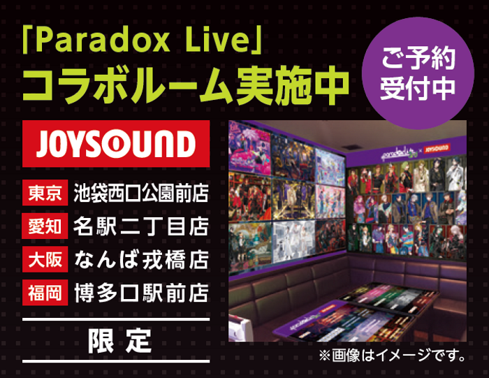 株式会社エクシングの子会社で、全国にカラオケ店舗を展開する株式会社スタンダード(本社:東京都港区、代表取締役社長:米田洋一)は、2023年2月1日(水)から2023年5月7日(日)までの期間中、「Paradox Live 3rd Anniversary×JOYSOUND直営店コラボキャンペーン」と題し、JOYSOUND池袋西口公園前店(東京)・JOYSOUND名駅二丁目店(愛知)・JOYSOUNDなんば戎橋店(大阪)・JOYSOUND博多口駅前店(福岡)の4店舗にカラオケコラボルームをオープン!また、JOYSOUND直営店全店舗にて、オリジナルコースター付きコラボメニューを展開します。さらに、限定店舗およびオンラインストアにて、オリジナルグッズの完全予約販売も行います。