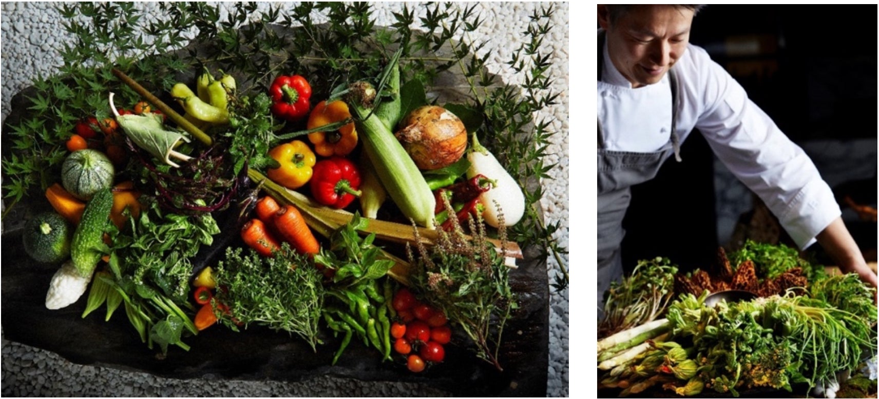今回の新メニュー開発にあたり、素材へこだわるシェフ井上は生産者、職人の方々に敬意を払い、交流を続けてきました。どの料理にもおいても、米の一粒一粒、野菜のひとつひとつに、生産者の深い思いと職人技が反映され、ダイニング・エクスペリエンスにも織り込まれています。伝統と革新の調和を重視し、何世紀にもわたって受け継がれてきた稲作や野菜栽培の方法を尊重しながらも、最先端の料理技術でそれらを昇華させたメニューが、現代的な美食体験をもたらします。