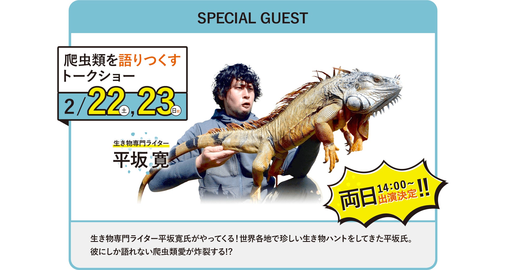 レプタイルズフィーバー2024に続き、生き物専門ライターとして世界を飛び回る平坂寛氏が登場!自らの体を張って生き物の生態を解説するYouTubeで人気を博し、チャンネル登録者数はなんと80万人以上!!