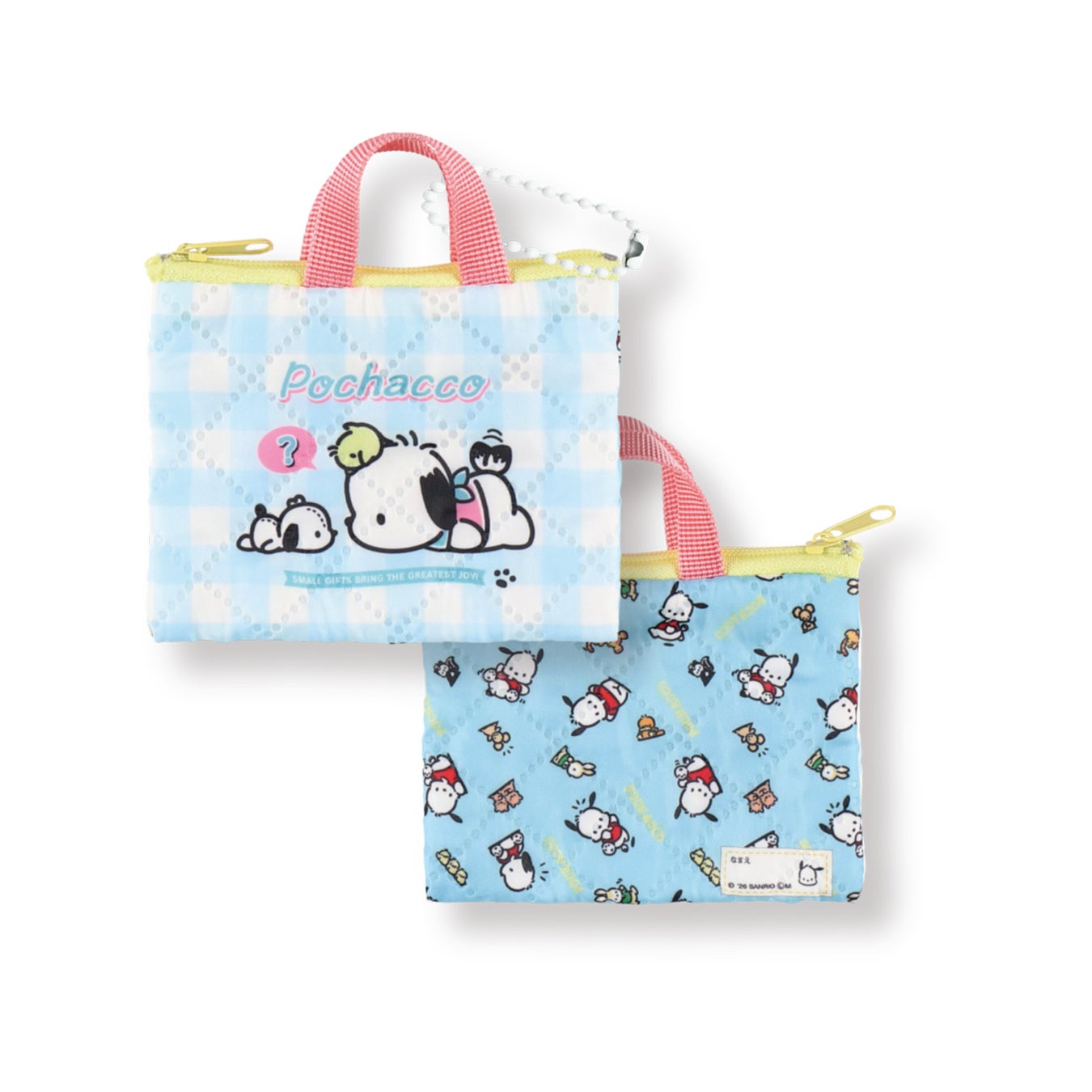 どこかなつかしいキルティング風生地のレッスンバッグを、そのまま小さくしたようなキーホルダーです。おなまえラベルや背面の総柄デザインなど、かつての思い出がよみがえるようなこだわりを随所にちりばめました。「ハローキティ」「リトルツインスターズ」「ポチャッコ」「マロンクリーム」のほか、ポチャッコ、けろけろけろっぴ、タキシードサム、バッドばつ丸をデザインした「サンリオキャラクターズ」の全5種がラインアップ。