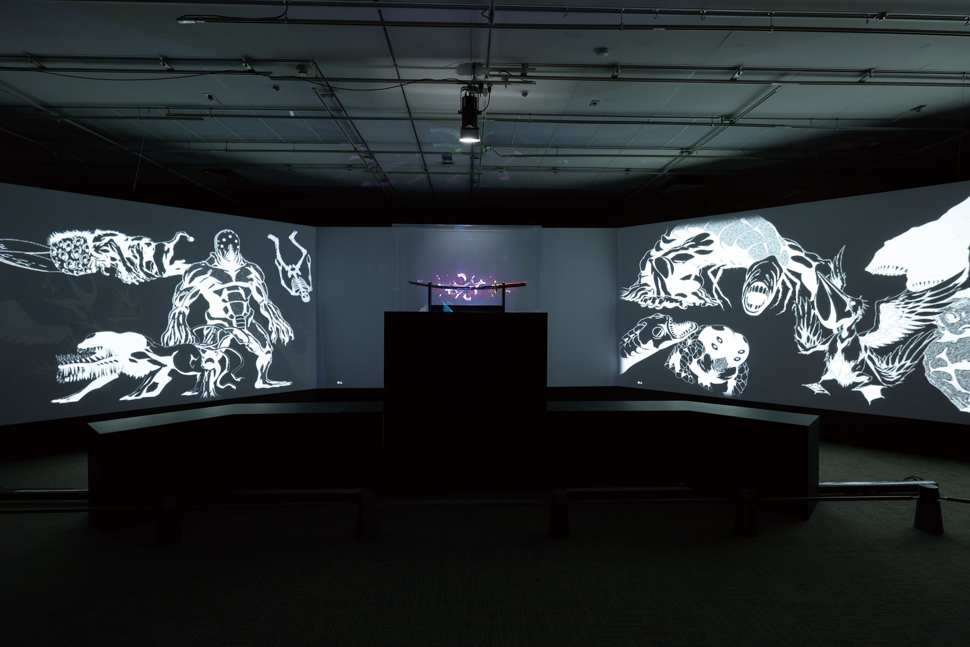 大型スクリーンで、『劇場版呪術廻戦 0』の百鬼夜行、乙骨vs夏油の激しい戦いの中に、没入できる空間です。