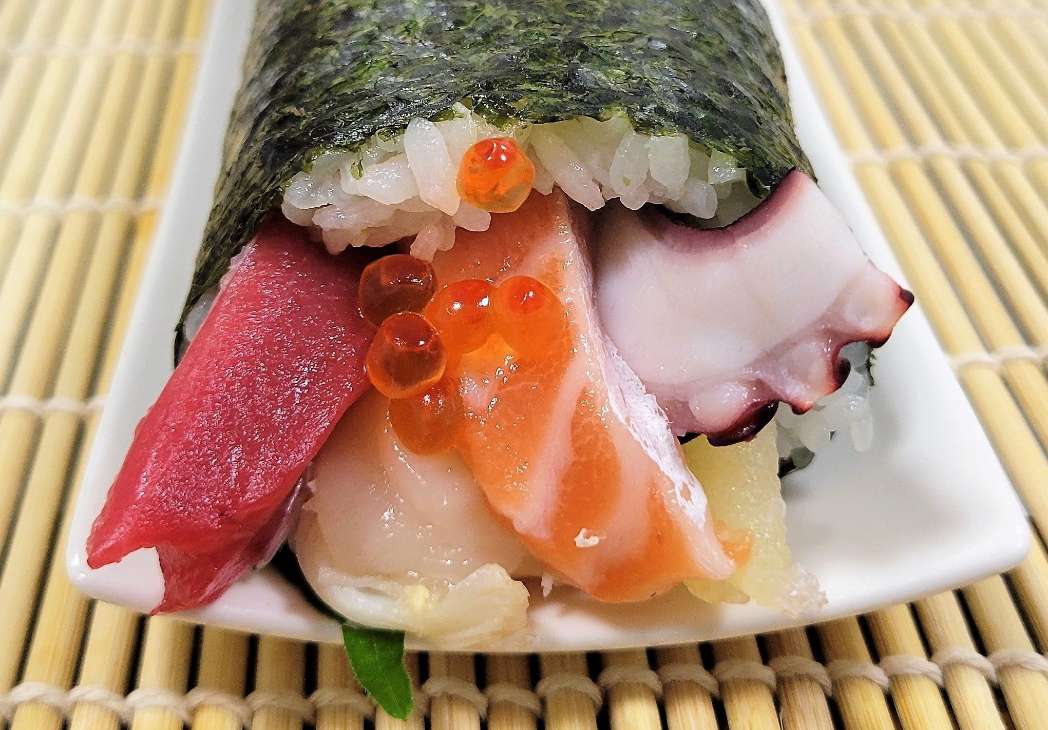 (海老、蟹風味蒲鉾、厚焼玉子、かんぴょう、椎茸、胡瓜、赤でんぶ)