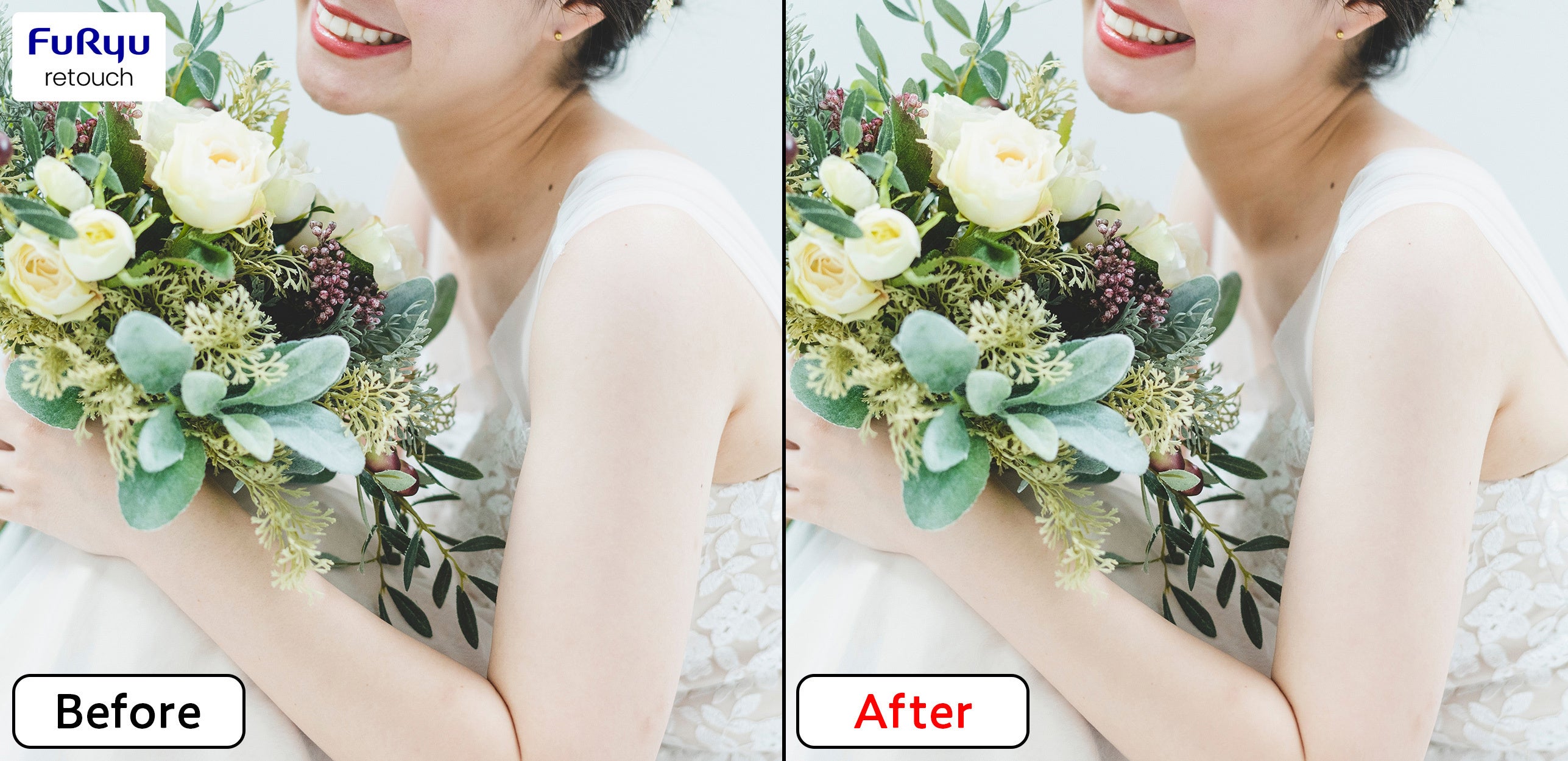 新機能「二の腕スリム」は、『FURYU retouch』のうち最もレタッチメニューが充実している『FURYU retouch PRO』への導入となります。従来の顔や全身の調整に加え、特にウェディングシーンにおいて露出機会の多い二の腕の細さを全4段階から調整することができます。ソロショットも2名で腕を組んでいるポーズにも、また、洋装にも和装にも、といった風にウェディングフォトならでは様々な構図に対応。ご本人らしさや写真の世界観を大切し、過度な加工ではなく“自然に”盛ることができます。