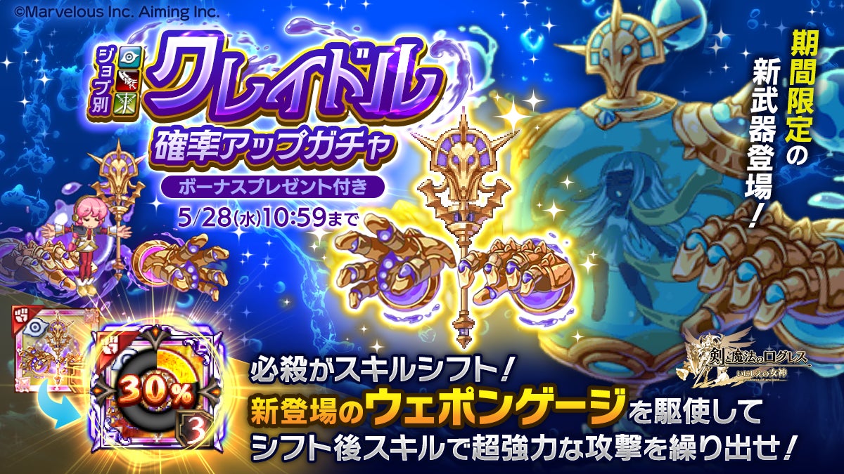 スマホ向け本格オンラインRPG『剣と魔法のログレス いにしえの女神』<新登場「ウェポンゲージ」を駆使して戦え!「ジョブ別 クレイドル確率アップガチャ」>