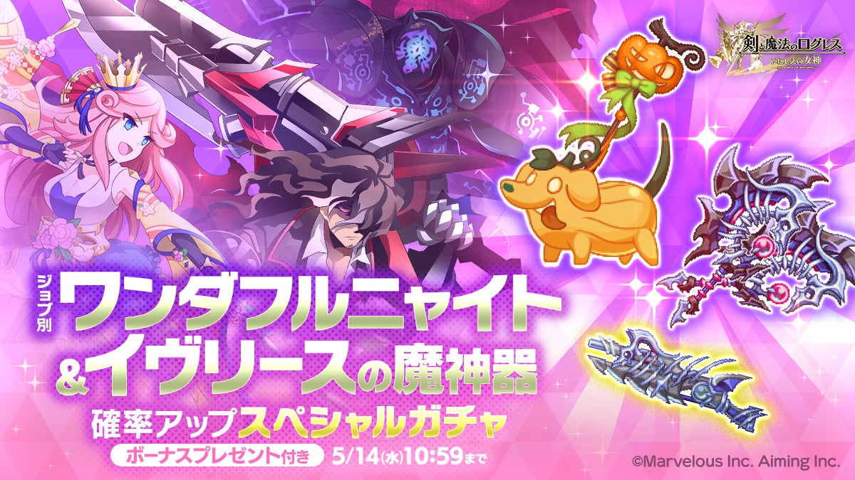 期間限定武器「ワンダフルニャイト」と、「イヴリースの魔神器」が古代機鋼兵/デスペラード/剣姫のジョブ別で確率アップ!