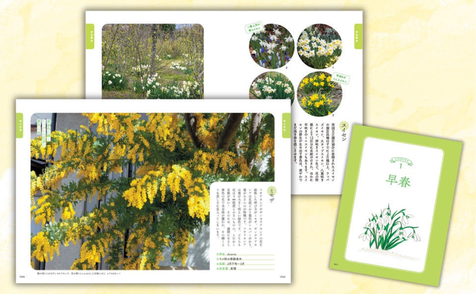 4月頃まで咲くスイセンには、なんと2万種以上の園芸品種があることをご存じですか? 例えば、うつむくように咲く姿が可愛らしい「雫(しずく)スイセン」は大人気の品種。また、世界中で親しまれている定番の「ミニスイセン」や、ラッパのような形が特徴的な「ラッパスイセン」など、魅力的な品種がたくさんあります。本書では、こうした花の豆知識やエピソードもたっぷり紹介。ページをめくるたびに、花の世界がもっと楽しく、もっと身近に。
