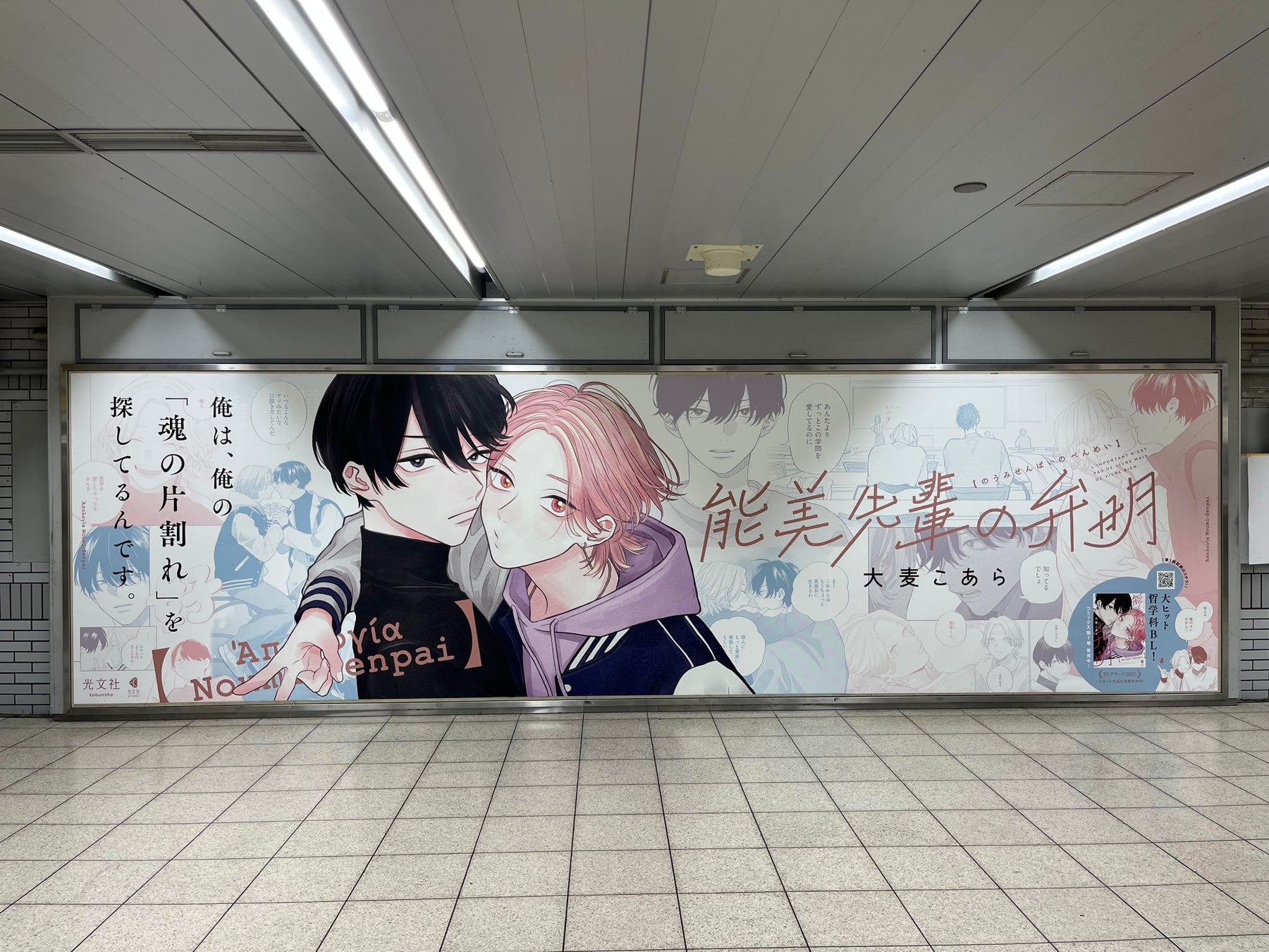 大ヒット御礼!『能美先輩の弁明』が10万部突破!! 池袋駅に巨大ポスター登場&池袋エリアの対象書店限定で特製リバーシブルしおり(購入者特典)をプレゼント中!