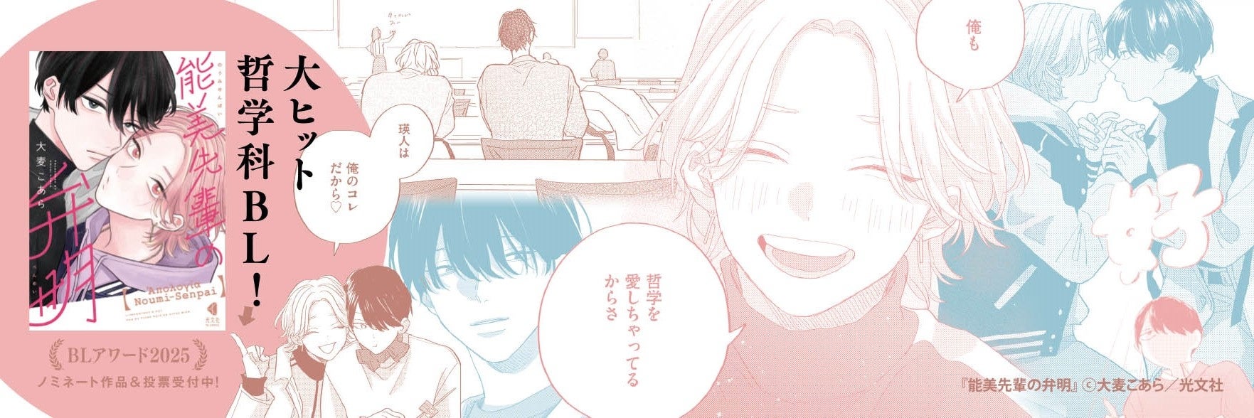 光文社のBLコミック『能美先輩の弁明』(大麦こあら)が発売以来絶好調! おかげさまで10万部(紙&電子 2025年1月末現在)を突破し、先日発表された「BLアワード2025」ノミネート作にも選ばれました。